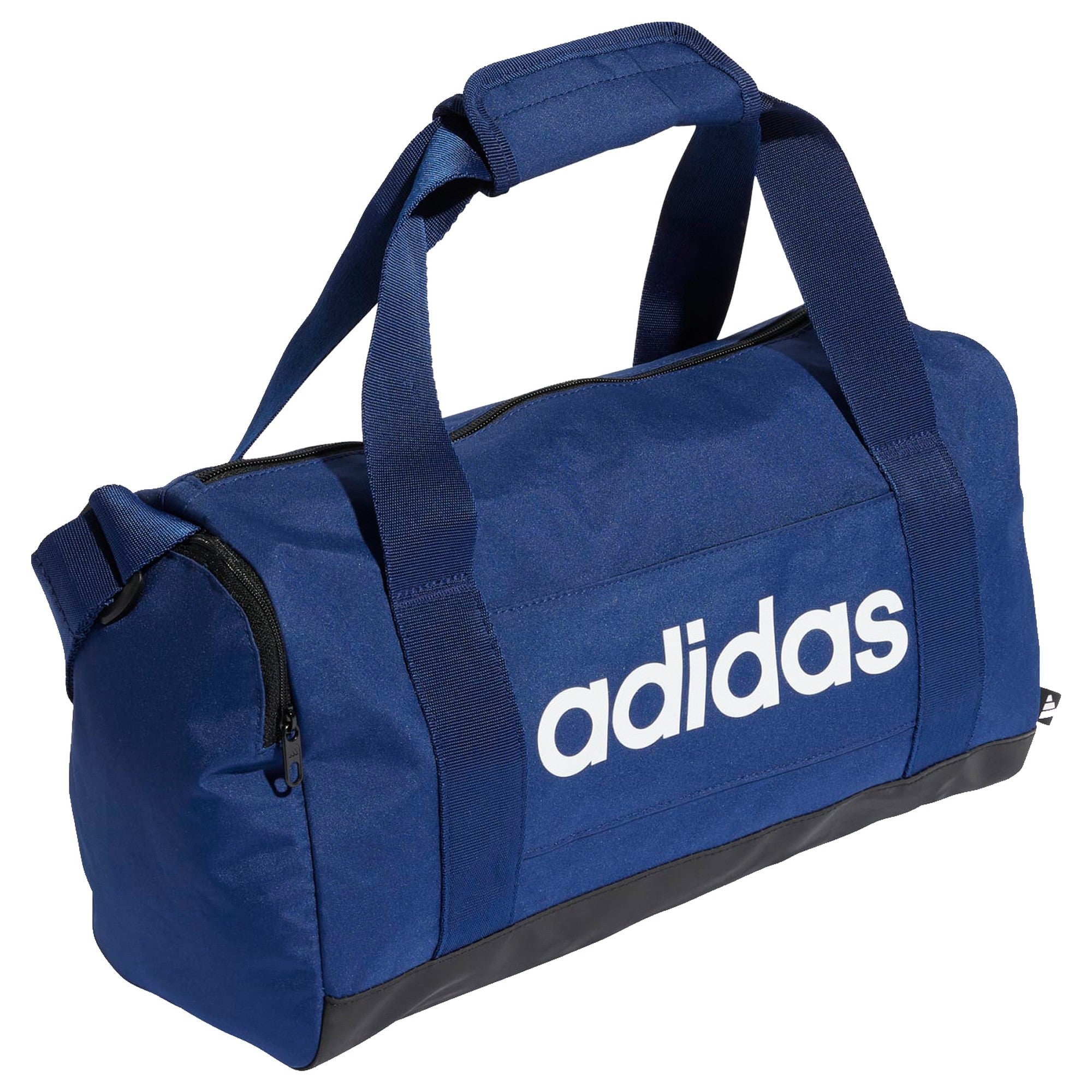 Discover the adidas Linear Sports Bag XS in a stylish dark blue color with white accents. This compact sports bag is the perfect companion for your fitness and leisure activities. Weighing just 0.27 kilograms and with a generous volume of 12.5 liters, it offers enough space for all your essentials without being heavy.