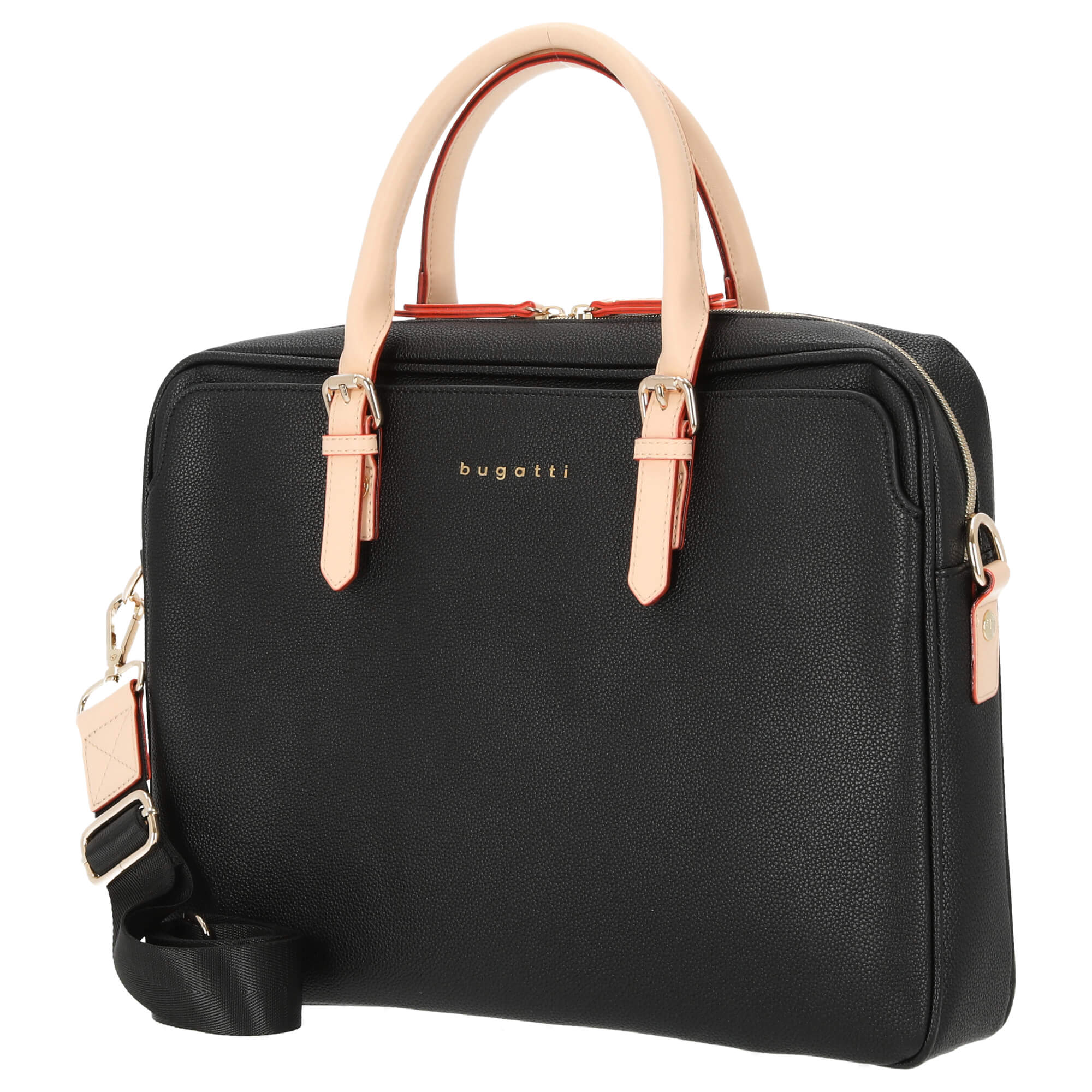 Discover the elegant bugatti Ella briefcase in the timeless color black . This stylish briefcase is not only a practical companion for everyday life, but also sets fashionable accents. Weighing just 0.90 kilograms, it is light and comfortable to carry, while at the same time offering enough space for all your important items.