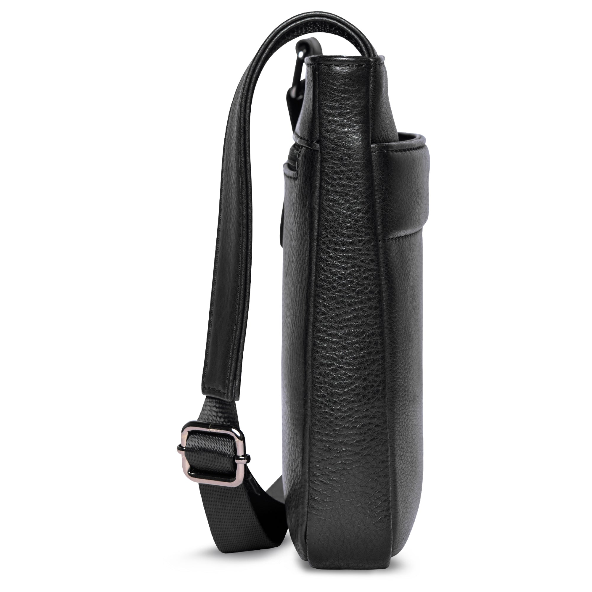 - Kompakte Schultertasche aus hochwertigem Rindleder in elegantem Schwarz