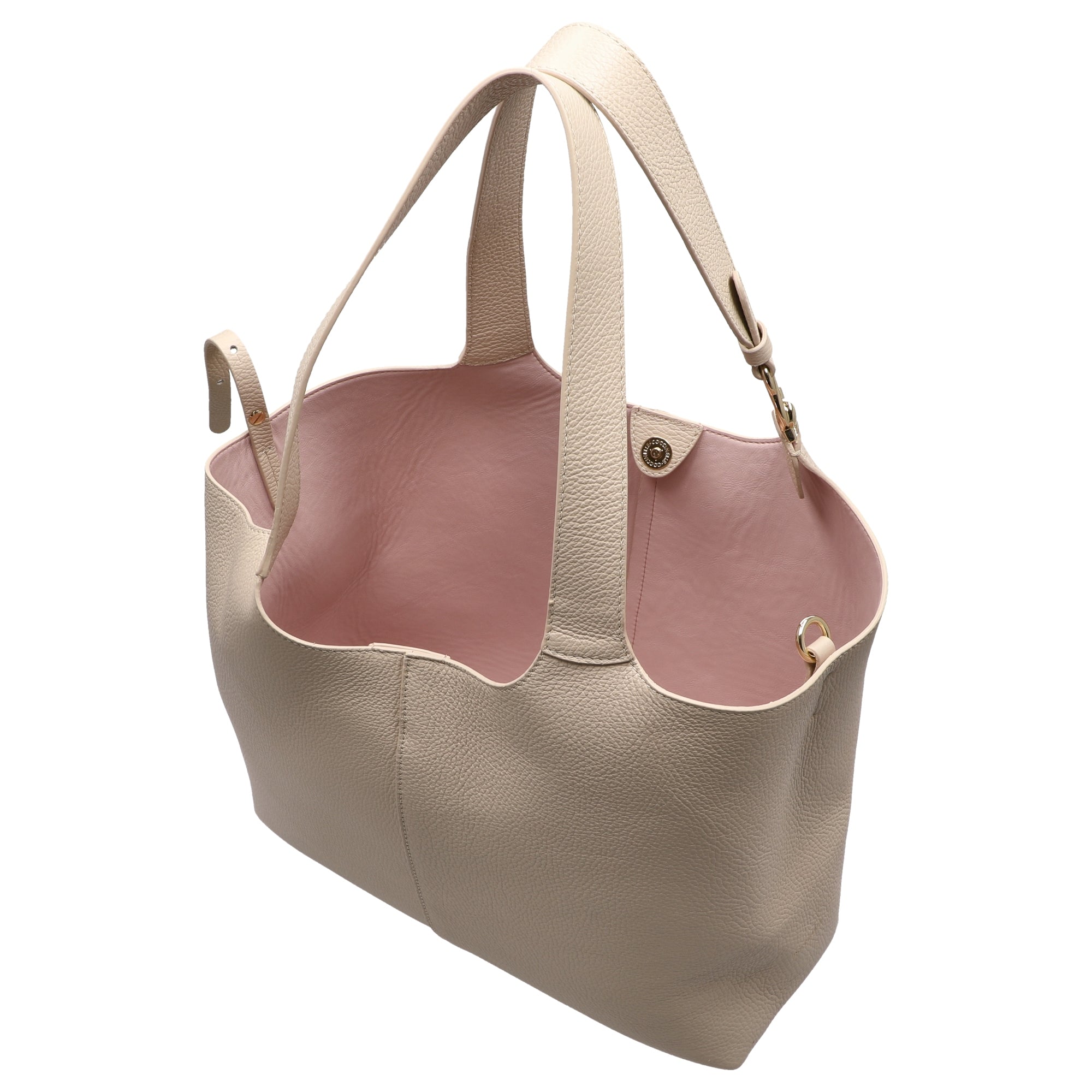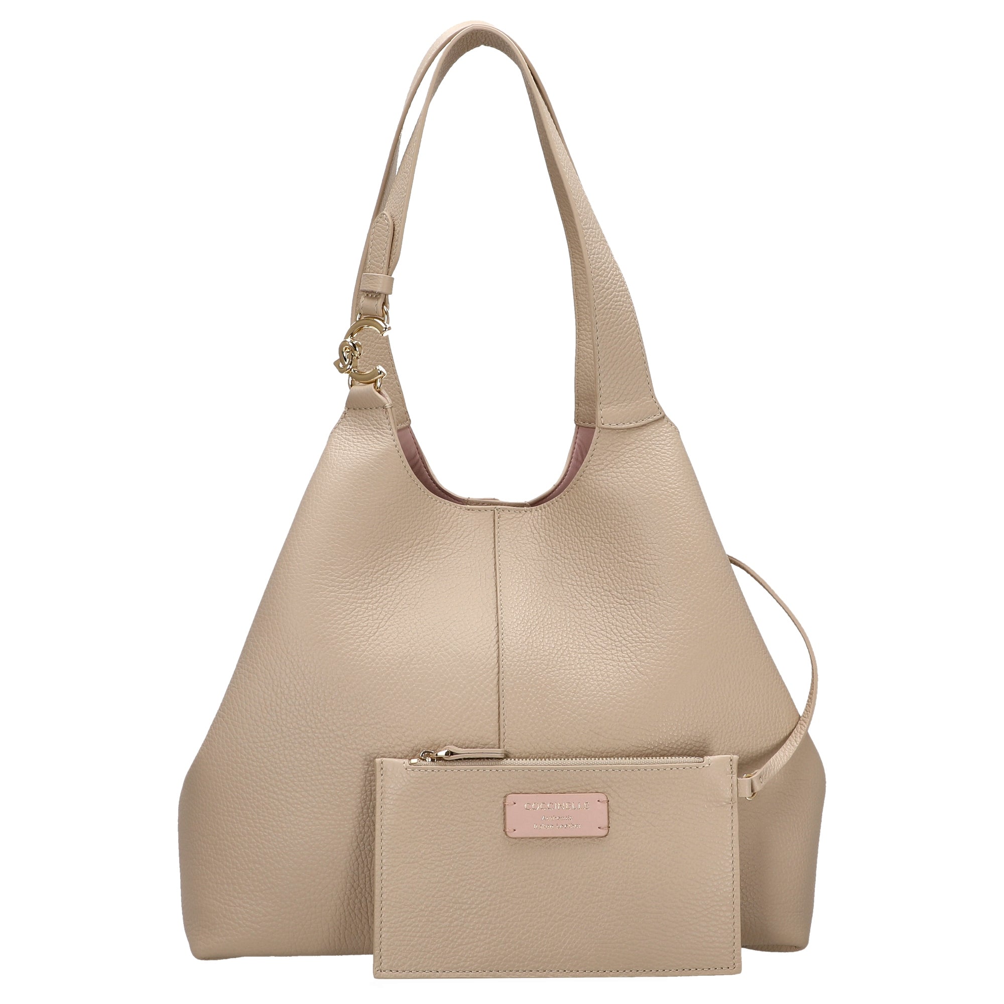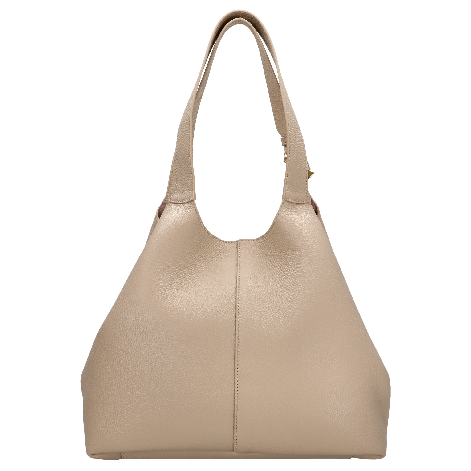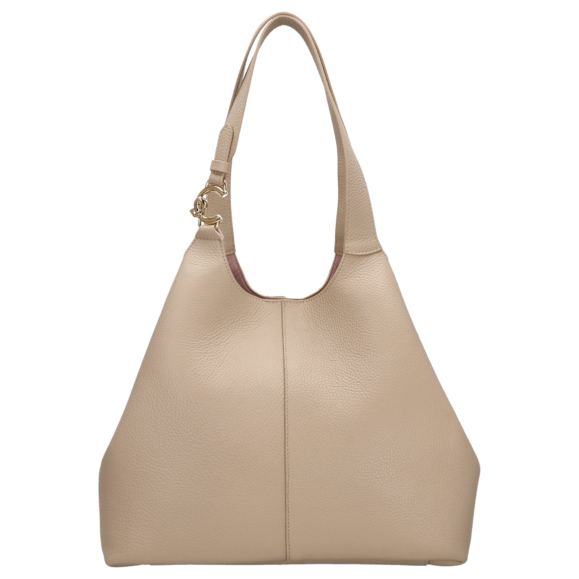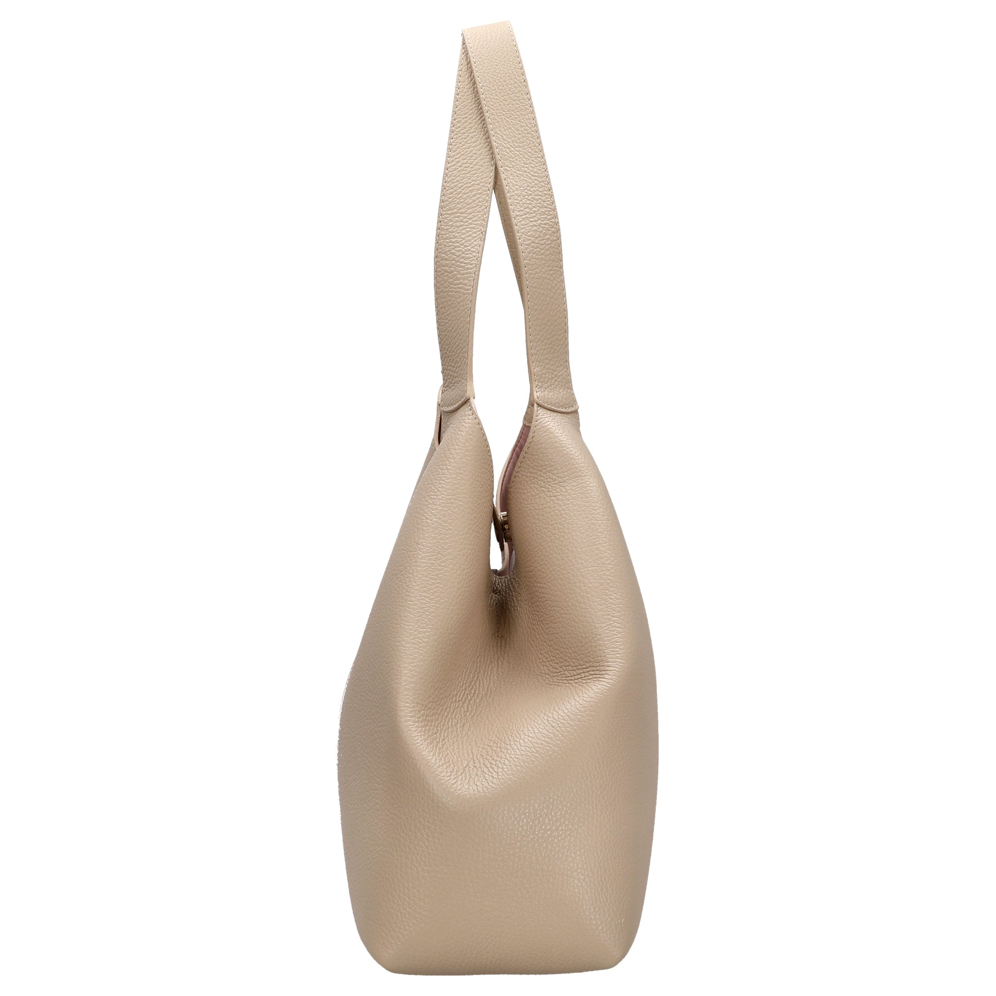 - Geschwungenes genarbtes Leder in elegantem Sandshell für eine feminine, weiche Haptik und edles Design
