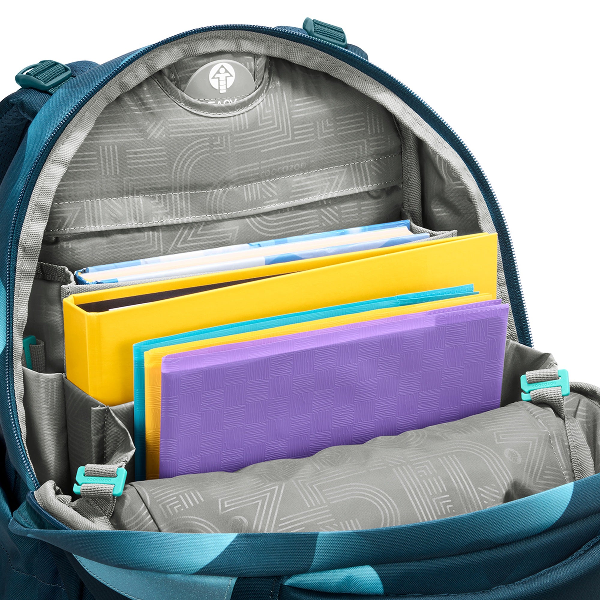 Der Coocazoo Mate Schulrucksack in der Farbe Aqua Flow ist ein vielseitiger Begleiter für Grundschüler und Jugendliche auf dem Weg zur weiterführenden Schule. Mit einem Volumen von 30 Litern und einem Gewicht von nur 1,25 Kilogramm bietet er ausreichend Stauraum bei gleichzeitig angenehmem Tragekomfort.