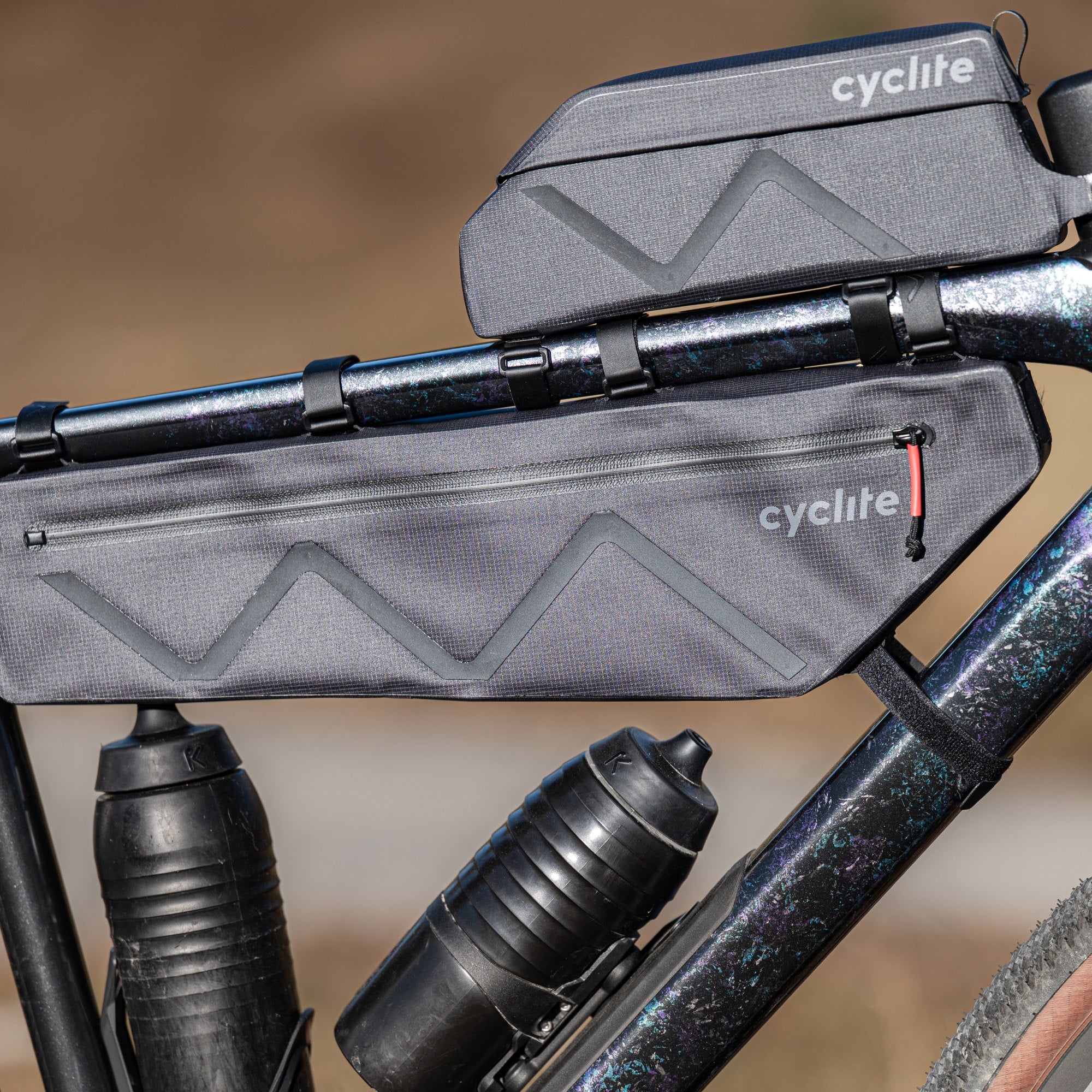 Eine funktional gestaltete Rahmentasche von CYCLITE, die speziell für Bikepacking und längere Touren entwickelt wurde.