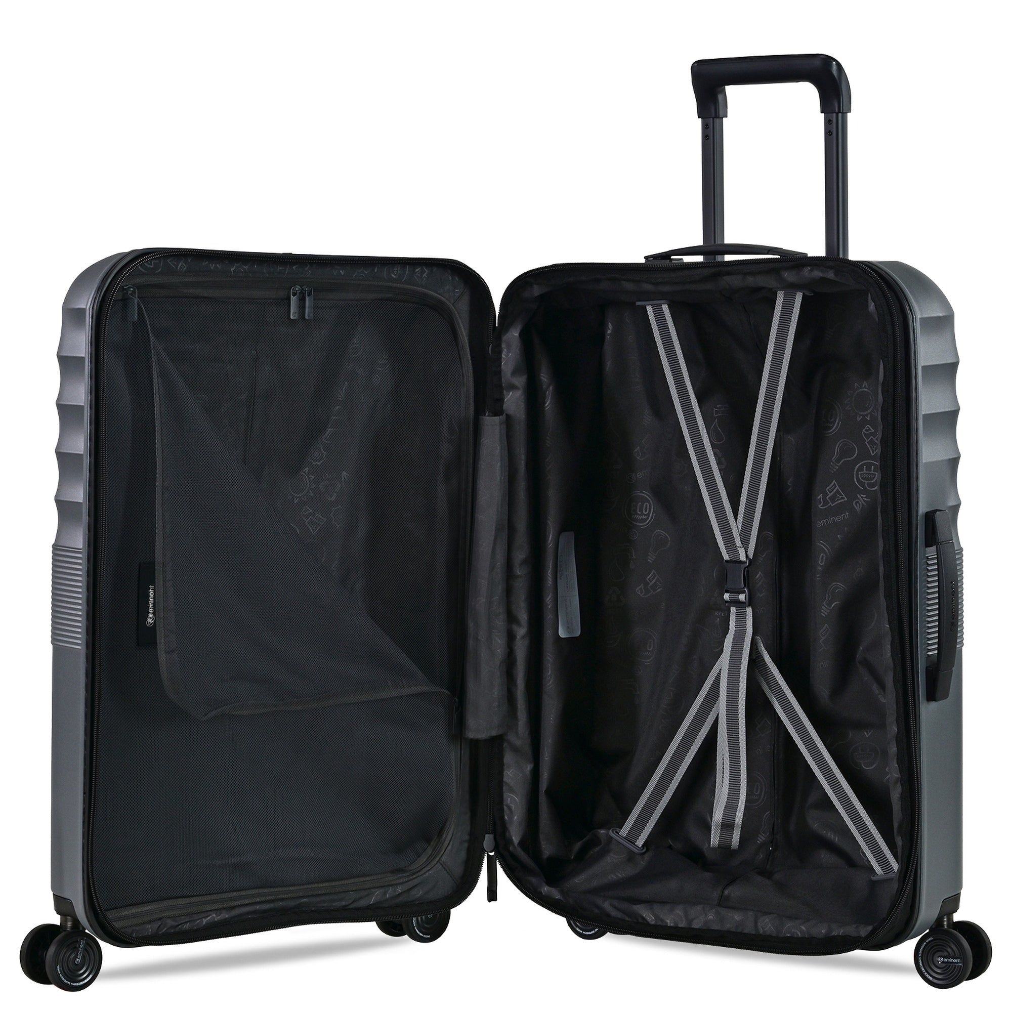 Der Eminent DANDELION 4-Rollen-Trolley M in dark grey ist ein funktionaler Begleiter für anspruchsvolle Reisende. Mit einer Höhe von 66 cm und einem Volumen von 76 l bietet er ausreichend Platz bei einem Gewicht von nur 3,2 kg.