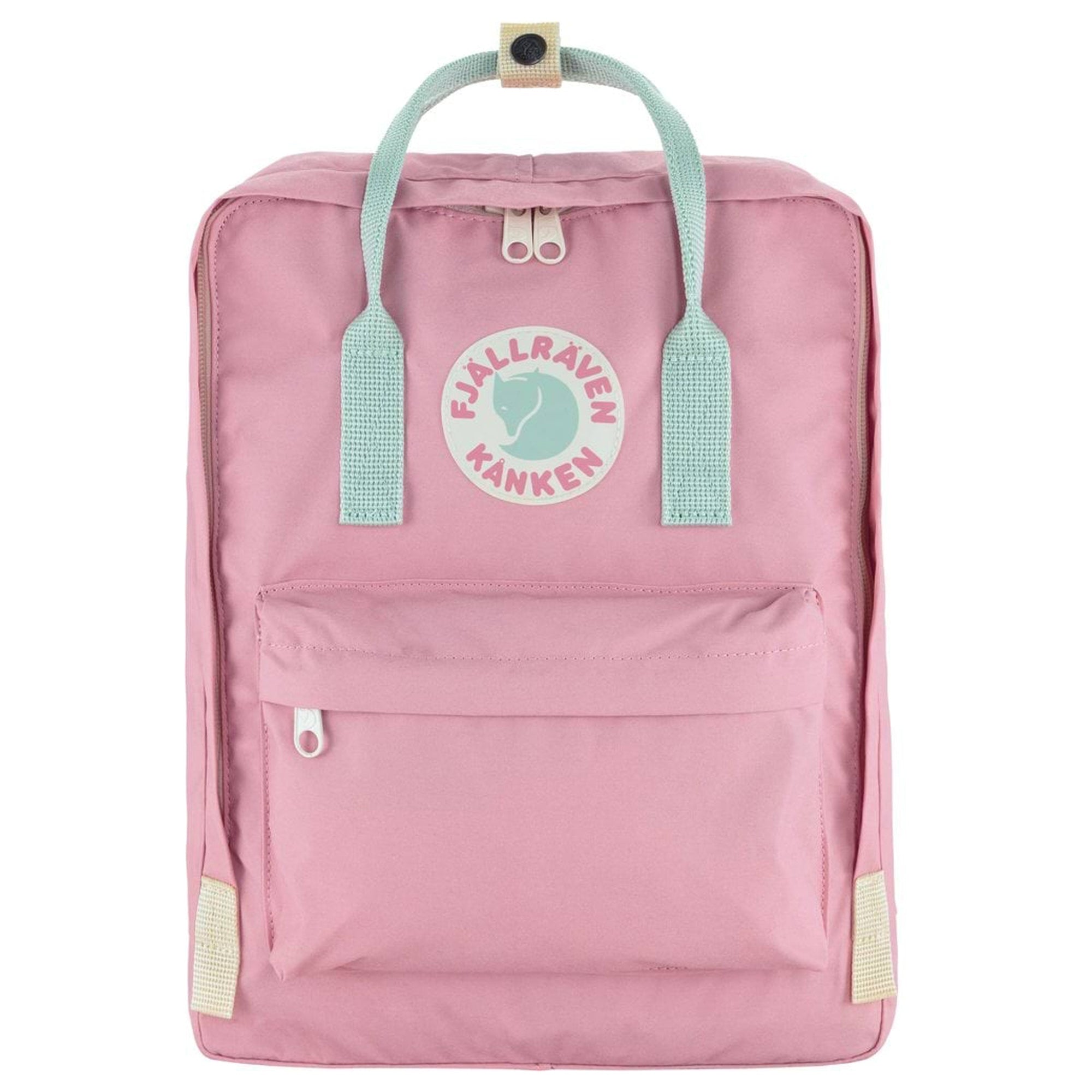 Mit einem Volumen von 16 Litern ist der Fjällräven Kånken Koncept Rucksack in pink-mint green der perfekte Begleiter für alle, die Funktionalität und Stil im Alltag verbinden möchten.