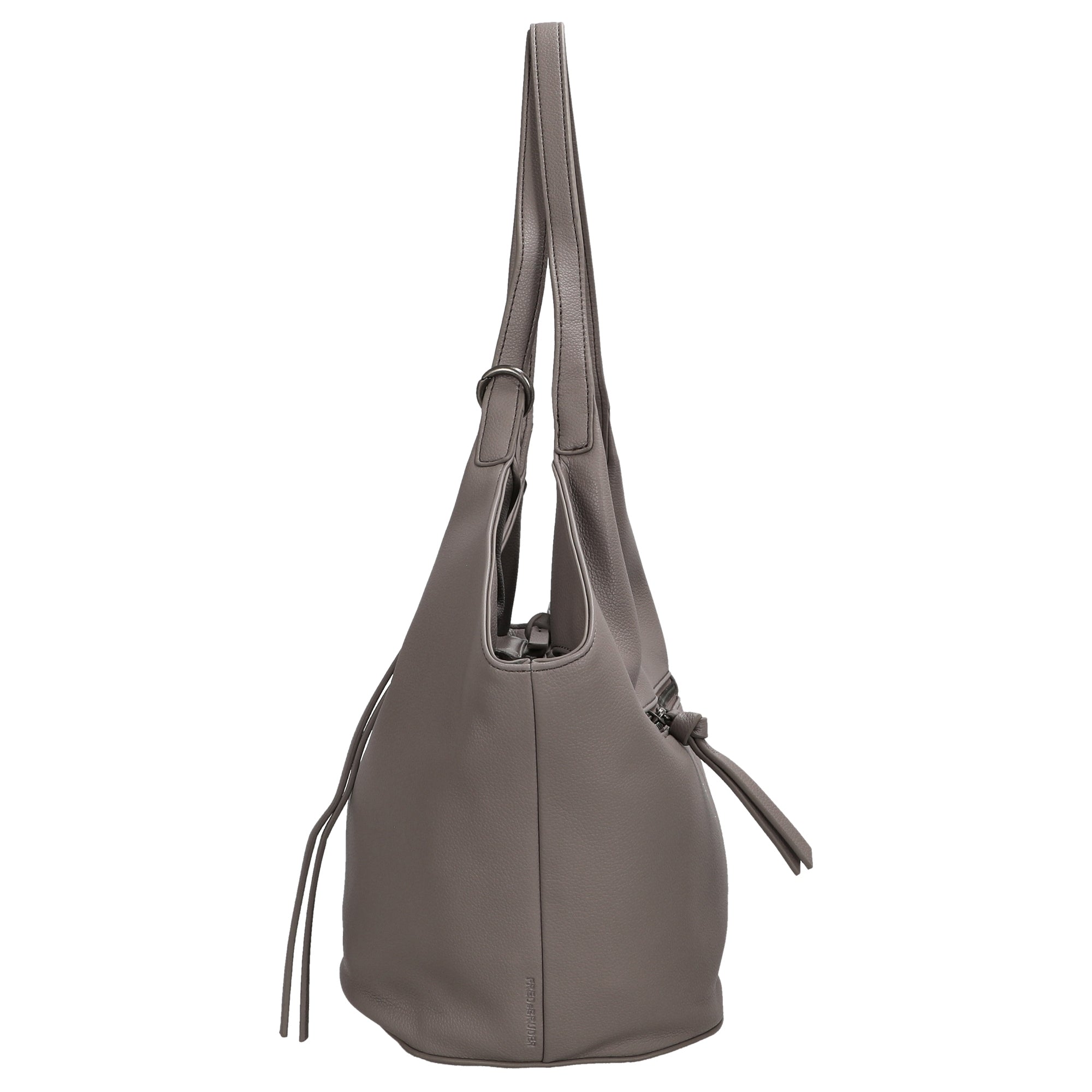 Ein stilvoller Shopper von FREDsBRUDER in elegantem warm grey, der natürliche Schönheit mit funktionalem Design verbindet.