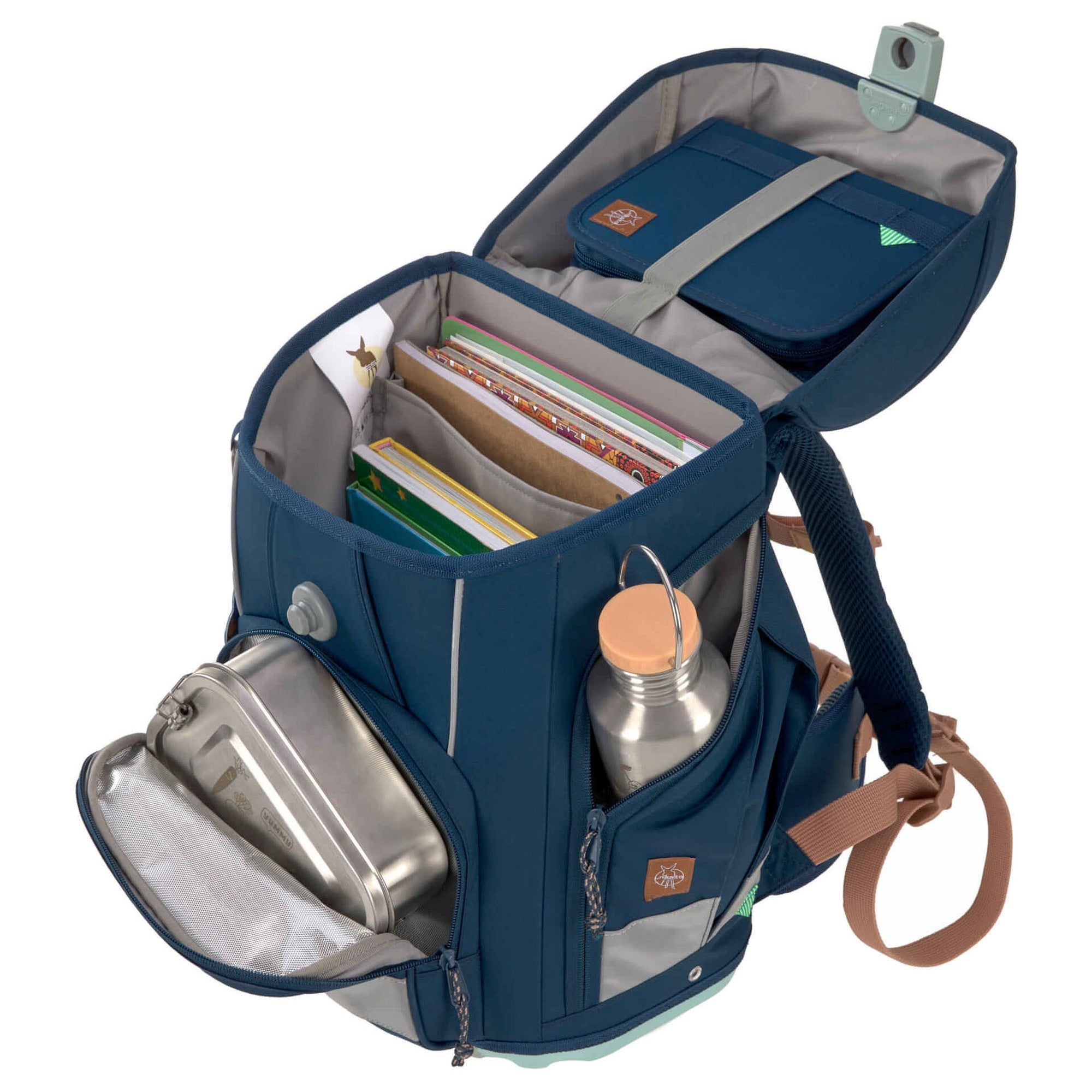 - 21 liters of storage space for books and school supplies, including a separate wet compartment