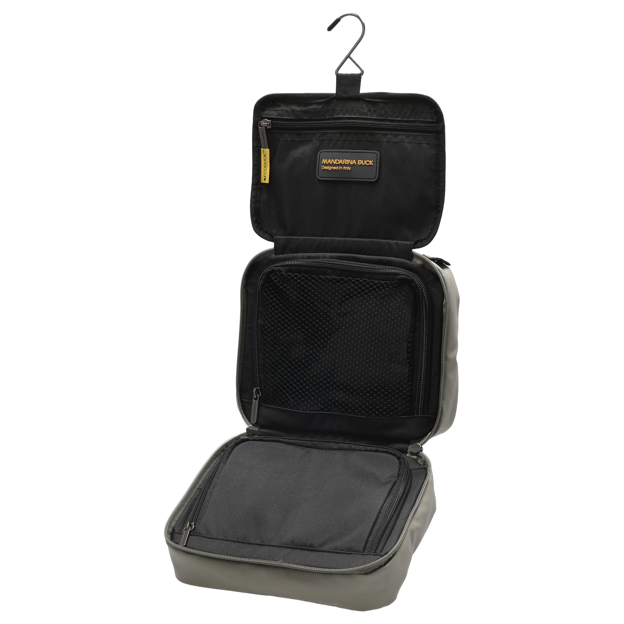 Ob auf Geschäftsreise oder im Alltag, der Mandarina Duck Eco Coated Kulturbeutel in mud bietet durchdachte Funktionalität und nachhaltigen Stil in einem kompakten Format.