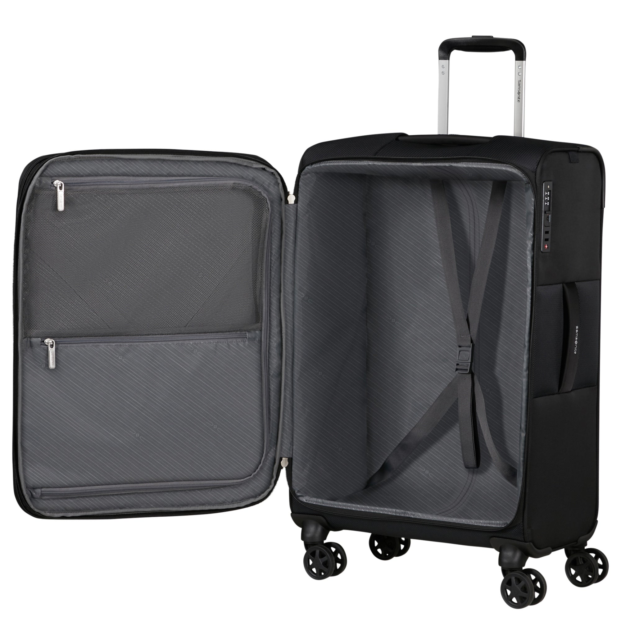 - Integriertes TSA-Schloss – gewährleistet sichere Aufbewahrung und komfortable Kontrolle am Flughafen