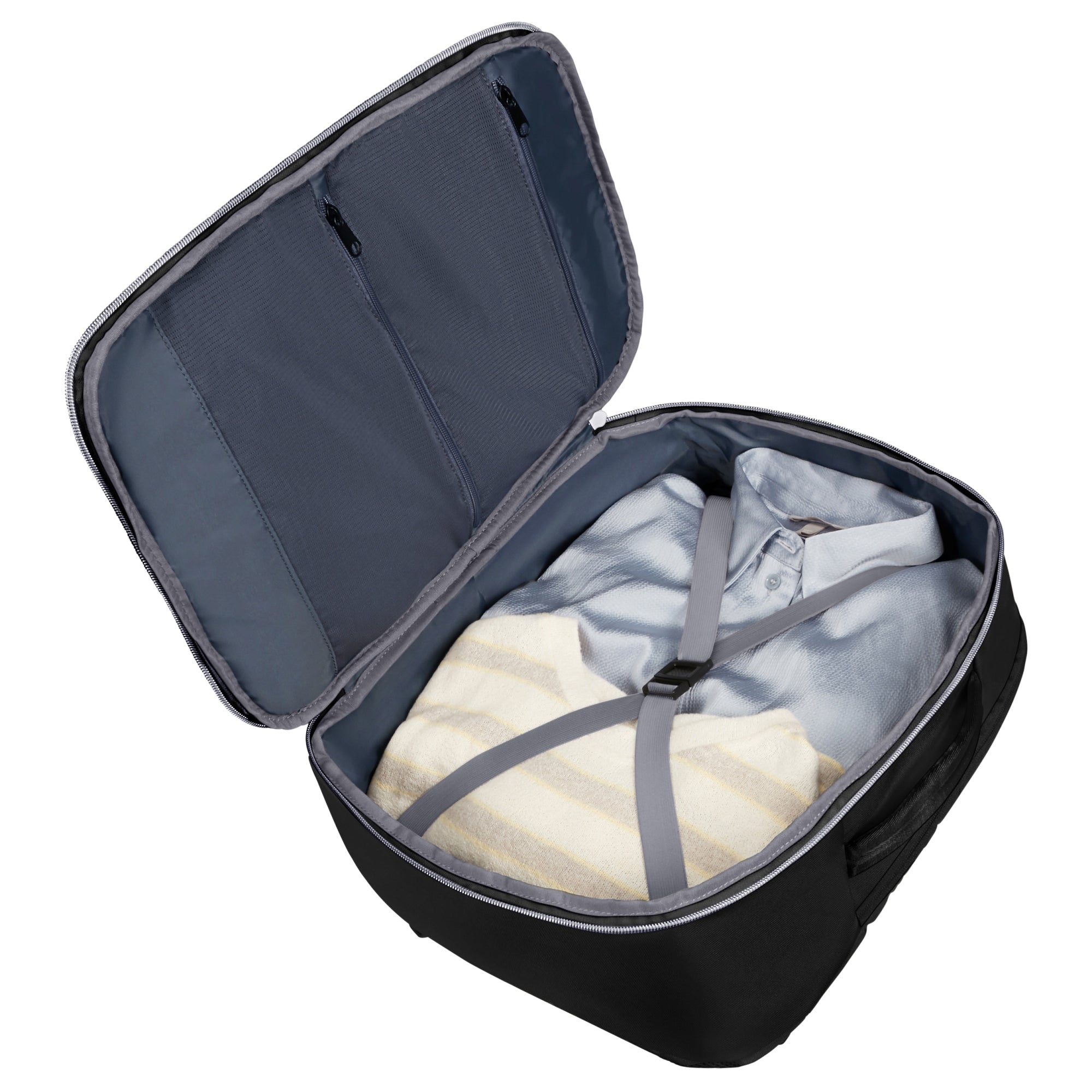- Optimale Fächeraufteilung – Innen mehrere Netzfächer für schnelle Übersicht und Smart Sleeve zur Befestigung an Trolleys