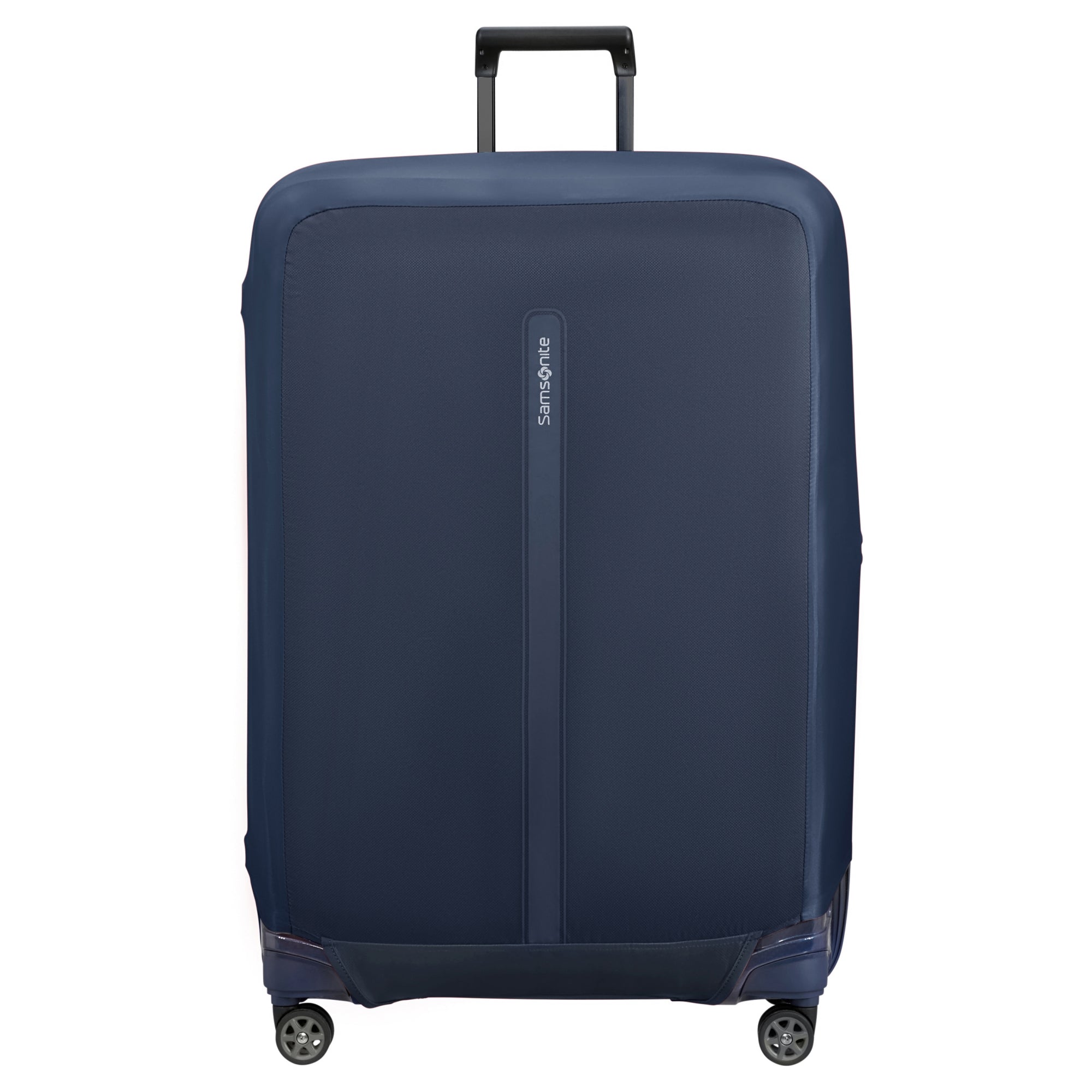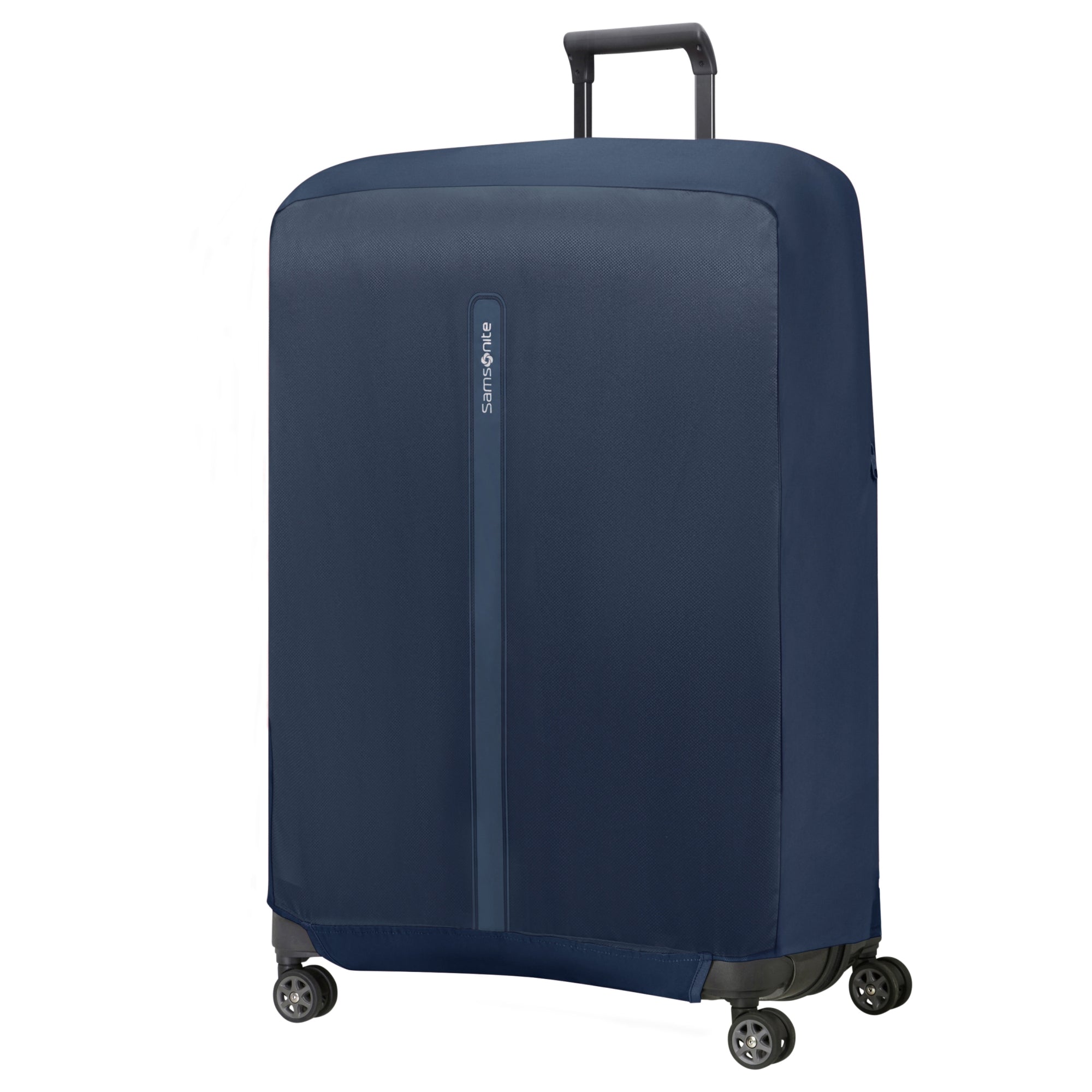 Eine funktional gestaltete Kofferschutzhülle von Samsonite in elegantem Midnight Blue, die Ihren Reisebegleiter zuverlässig schützt und gleichzeitig leicht zu erkennen ist.