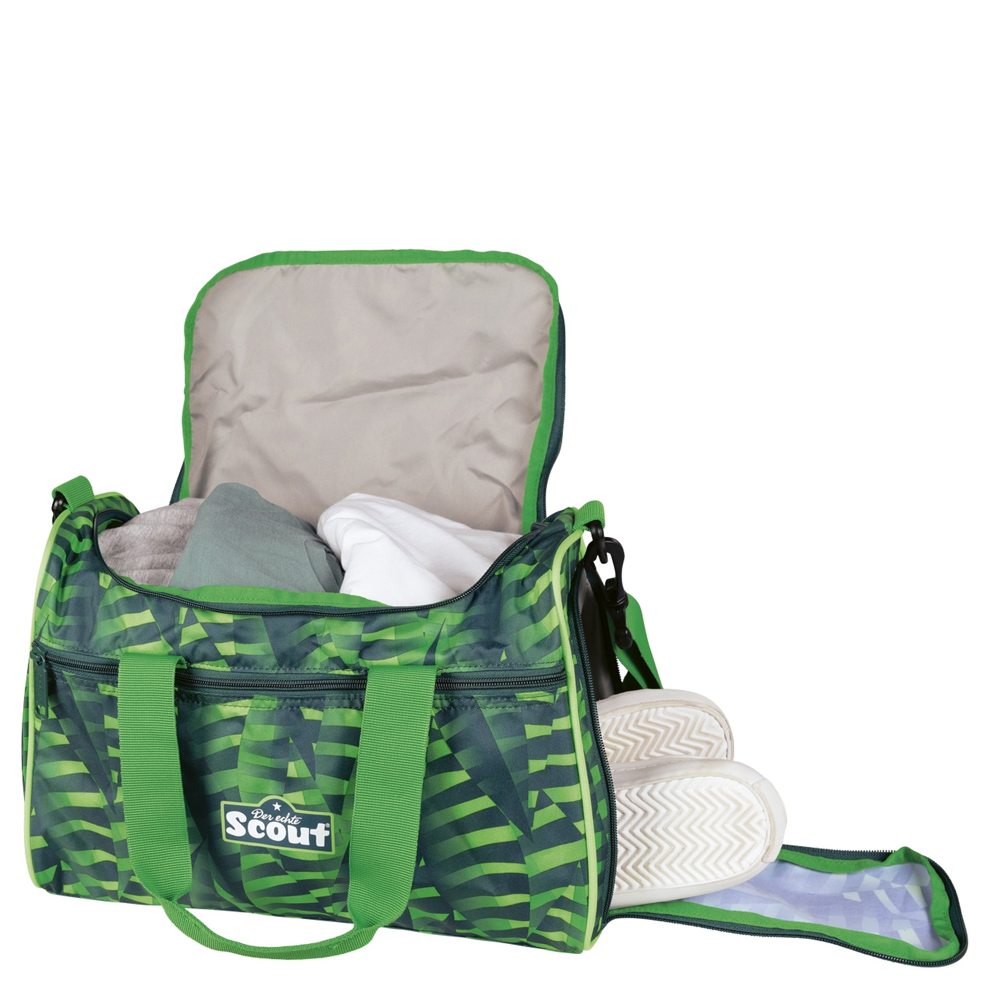 Die Scout Sporttasche in fröhlichem Danger Dino Design ist ein funktionaler Begleiter für Sport, Freizeit und den Schulalltag. Mit ihrer kompakten Größe und dem passenden Stil ergänzt sie ideal den Happy Confetti Schulranzen.