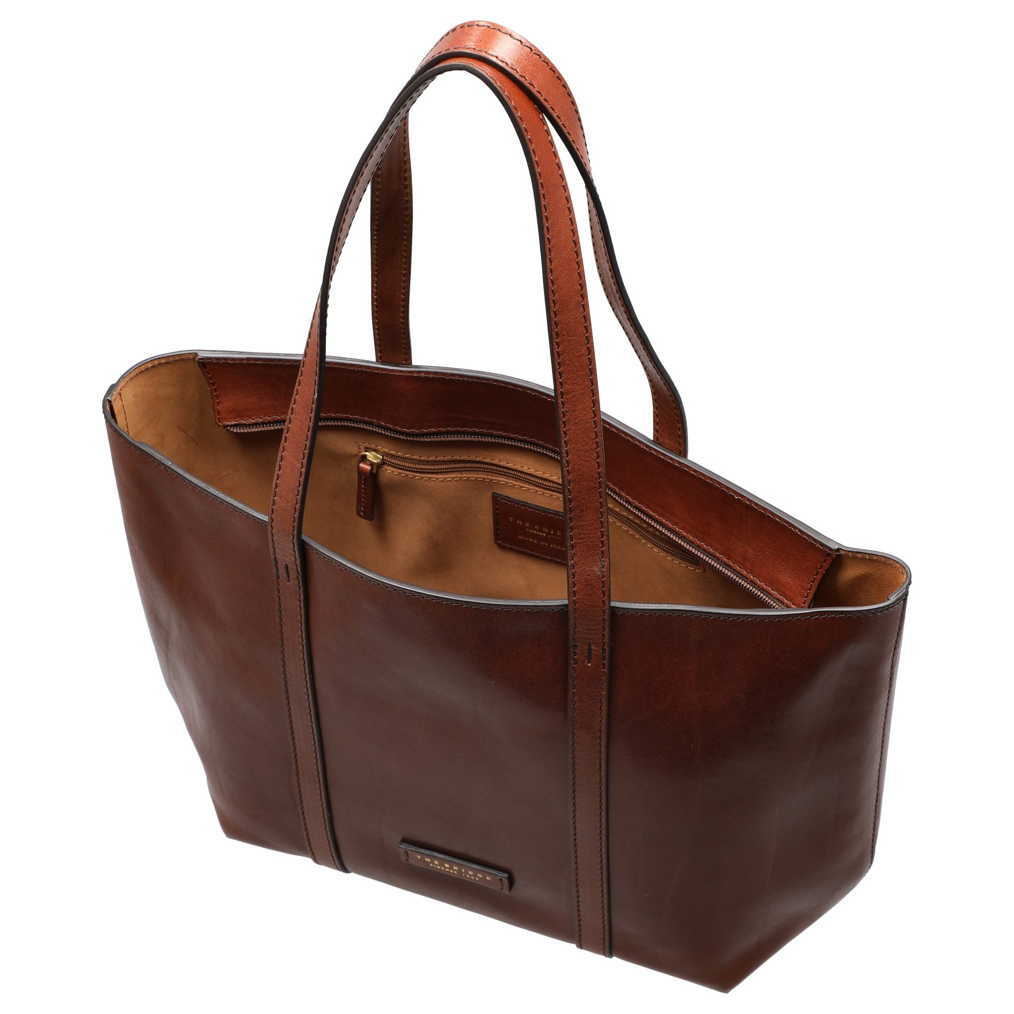 Ein stilvoller Shopper aus der eleganten Kollektion von The Bridge, gefertigt aus glattem Rindsleder in warmem Marrone. Diese Tasche verbindet zeitloses Design mit praktischer Funktionalität und begleitet modebewusste Frauen sowohl im Alltag als auch bei besonderen Anlässen.