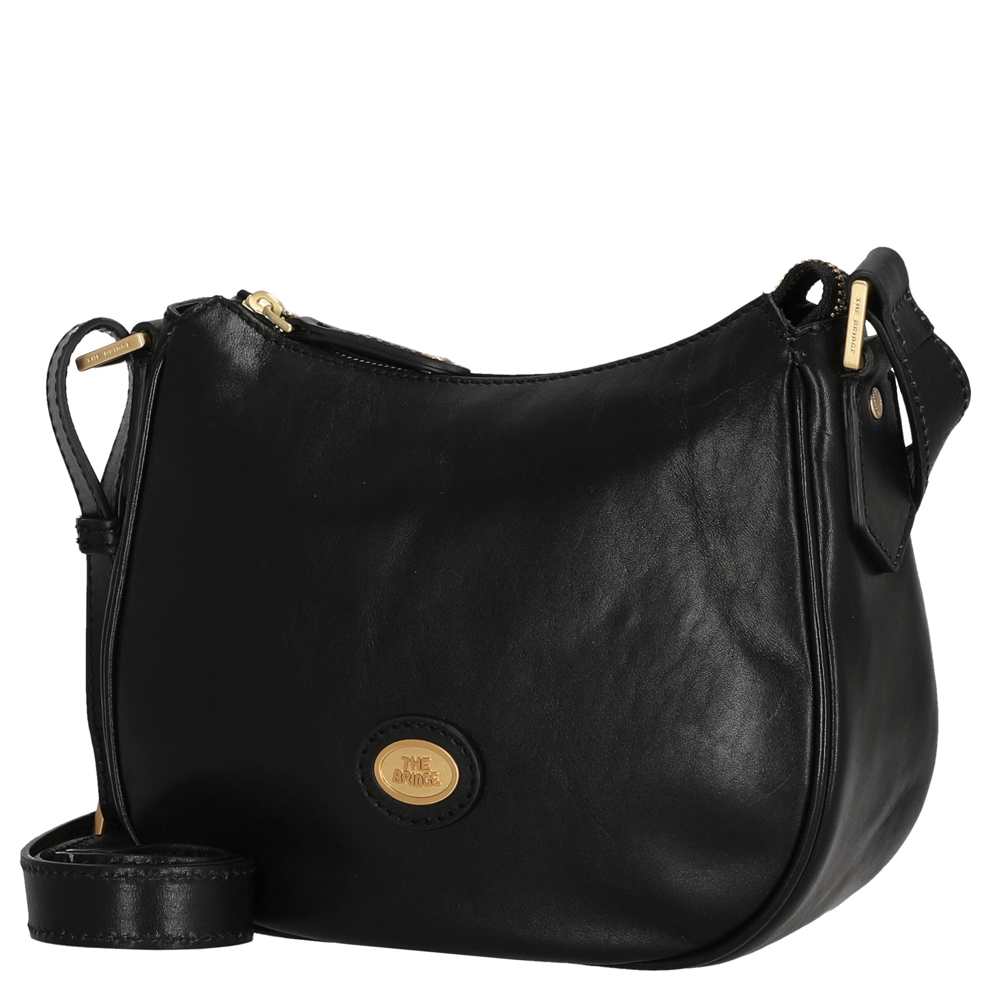 Die Umhängetasche von The Bridge in elegantem schwarzen Leder vereint zeitloses Design mit funktionaler Eleganz. Sie ist die stilvolle Wahl für modebewusste Frauen, die Wert auf hochwertige Details und angenehmen Tragekomfort legen.