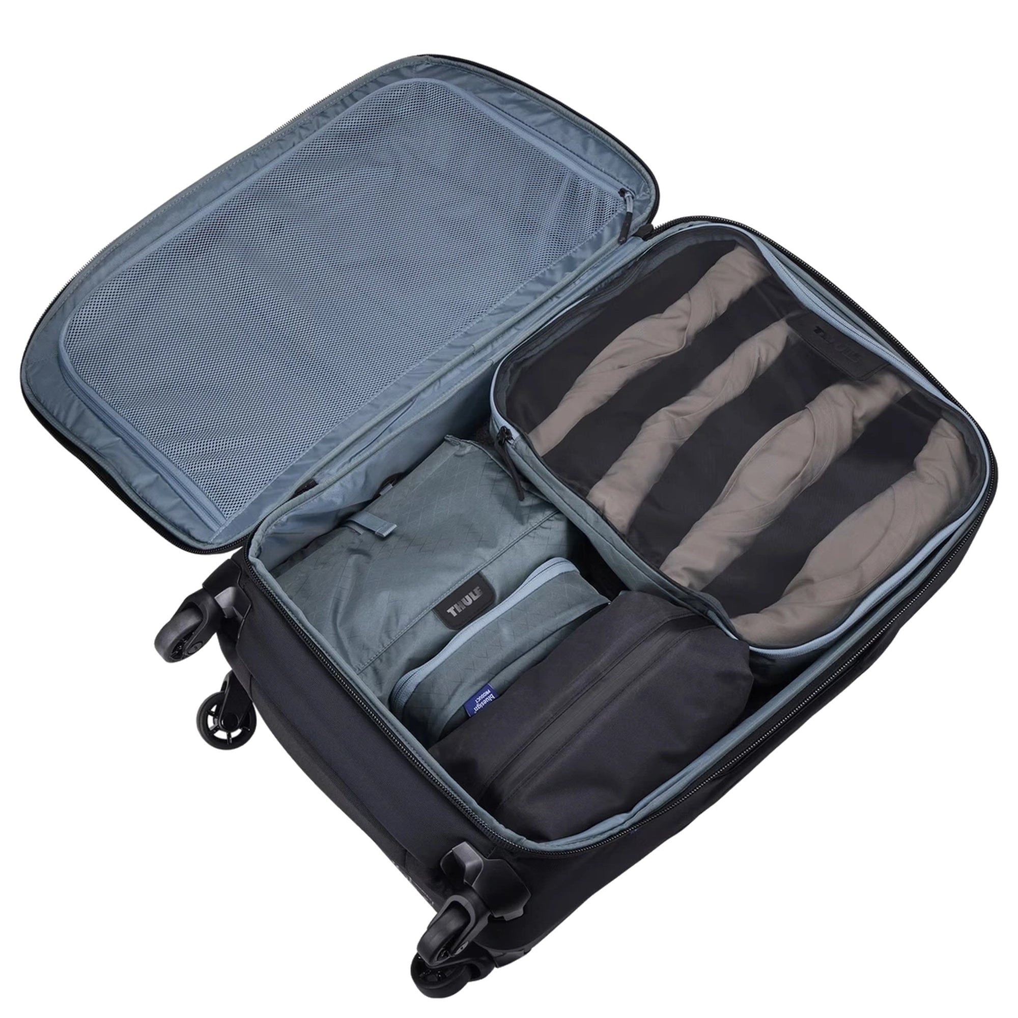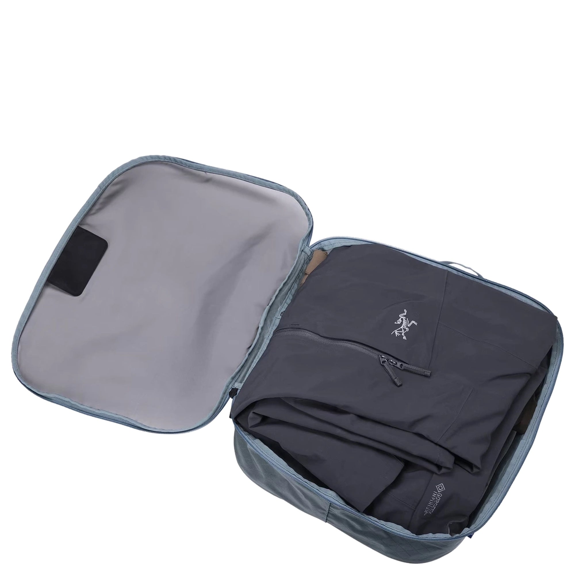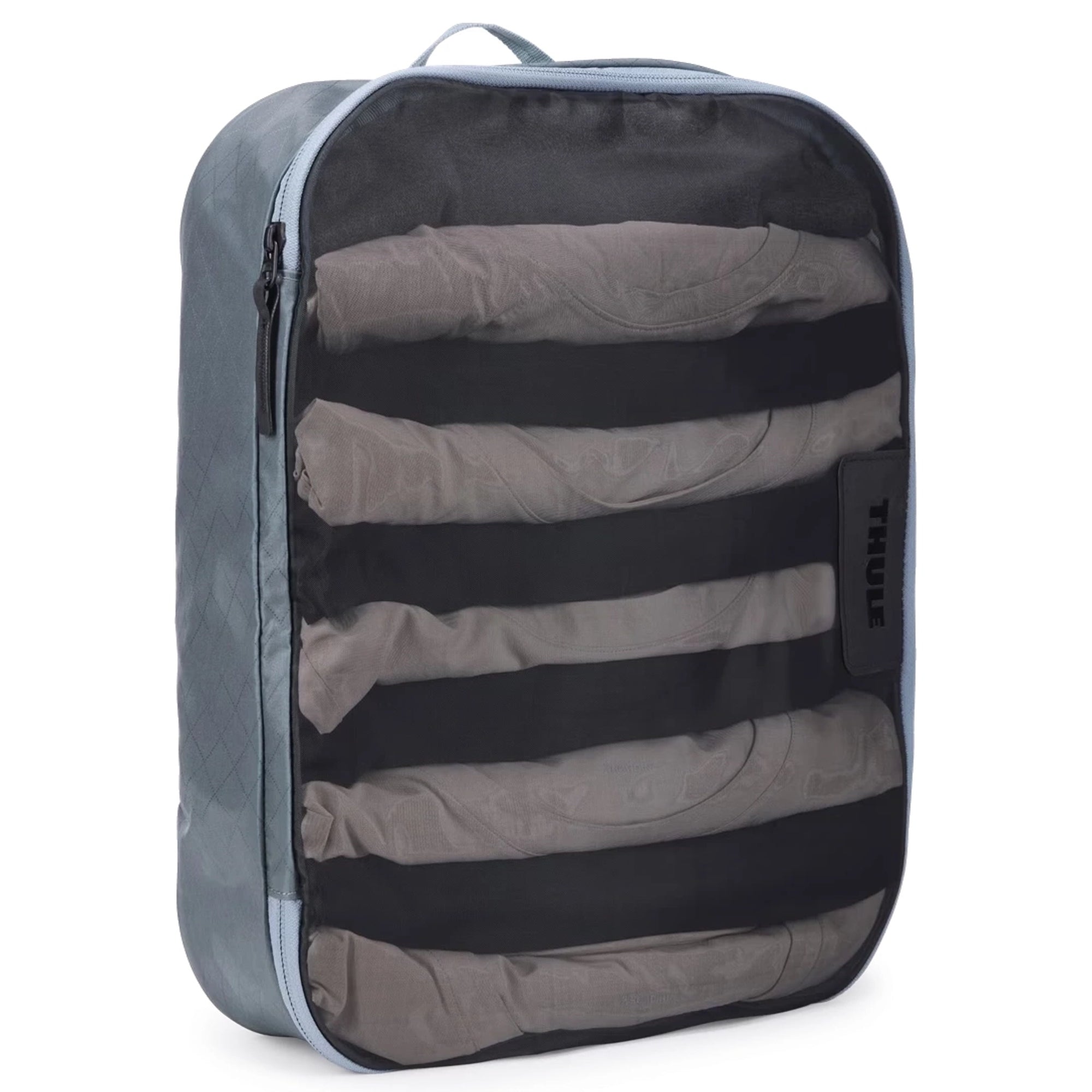Der Thule Packing Cube in der Farbe pond gray ist ein funktionales Reiseaccessoire für alle, die Wert auf Ordnung im Gepäck legen.