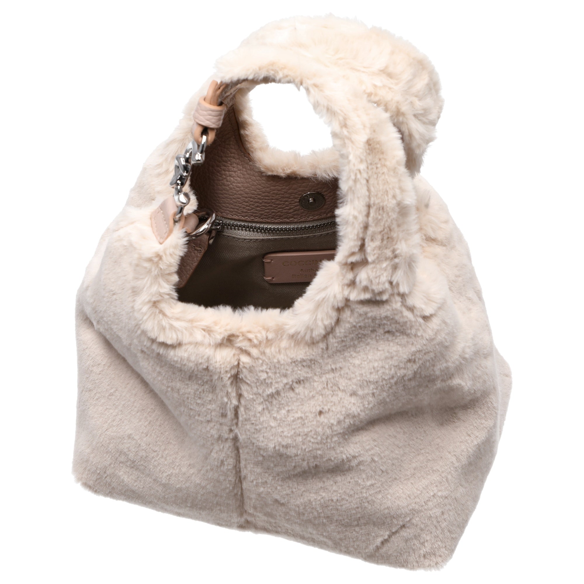 Die Coccinelle C-Easy Syn. Fur Henkeltasche vereint luxuriöse Eleganz mit kuscheligem Komfort. In der zarten Farbkombination aus natural und rosette setzt sie modische Akzente und verleiht jedem Outfit eine feminine Note – perfekt für stilbewusste Frauen, die auch im Alltag nicht auf Glamour verzichten möchten.