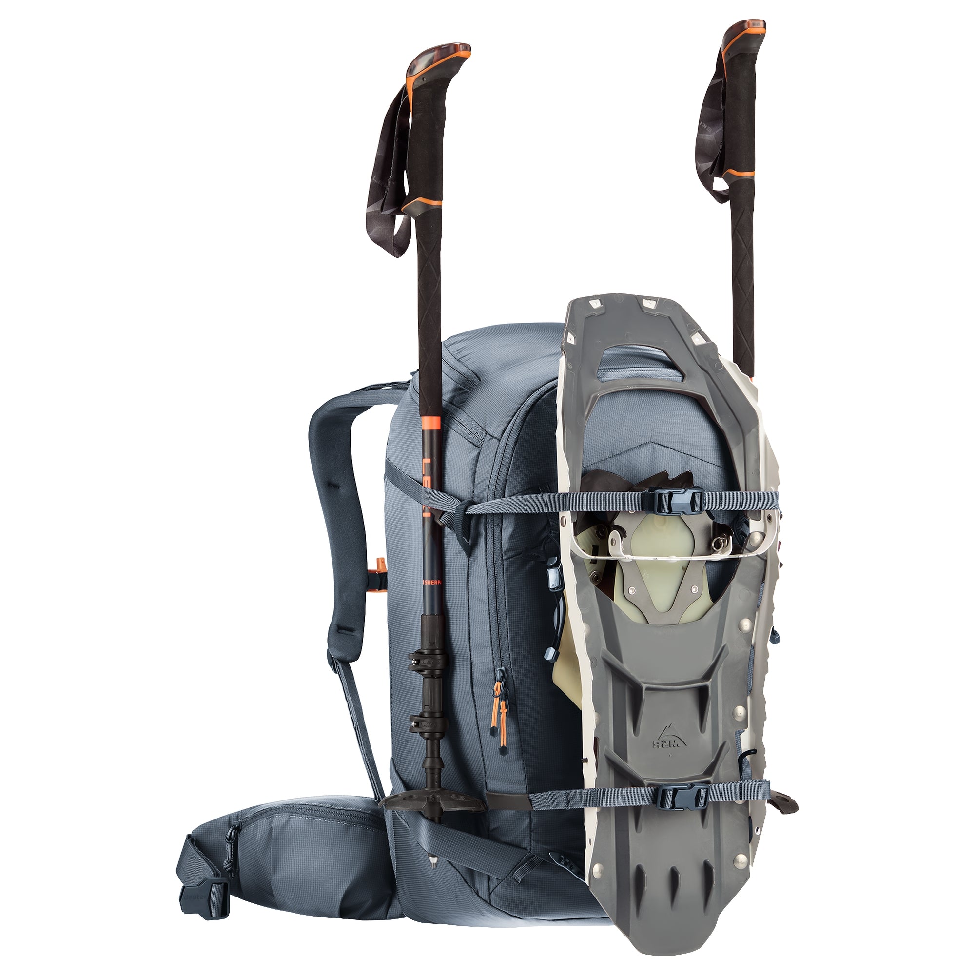 - Vielseitige Befestigungsmöglichkeiten – sichere Fixierung von Ski, Snowboard, Pickeln und Stöcken dank verstaubarer Riemen und Fronthalterungen