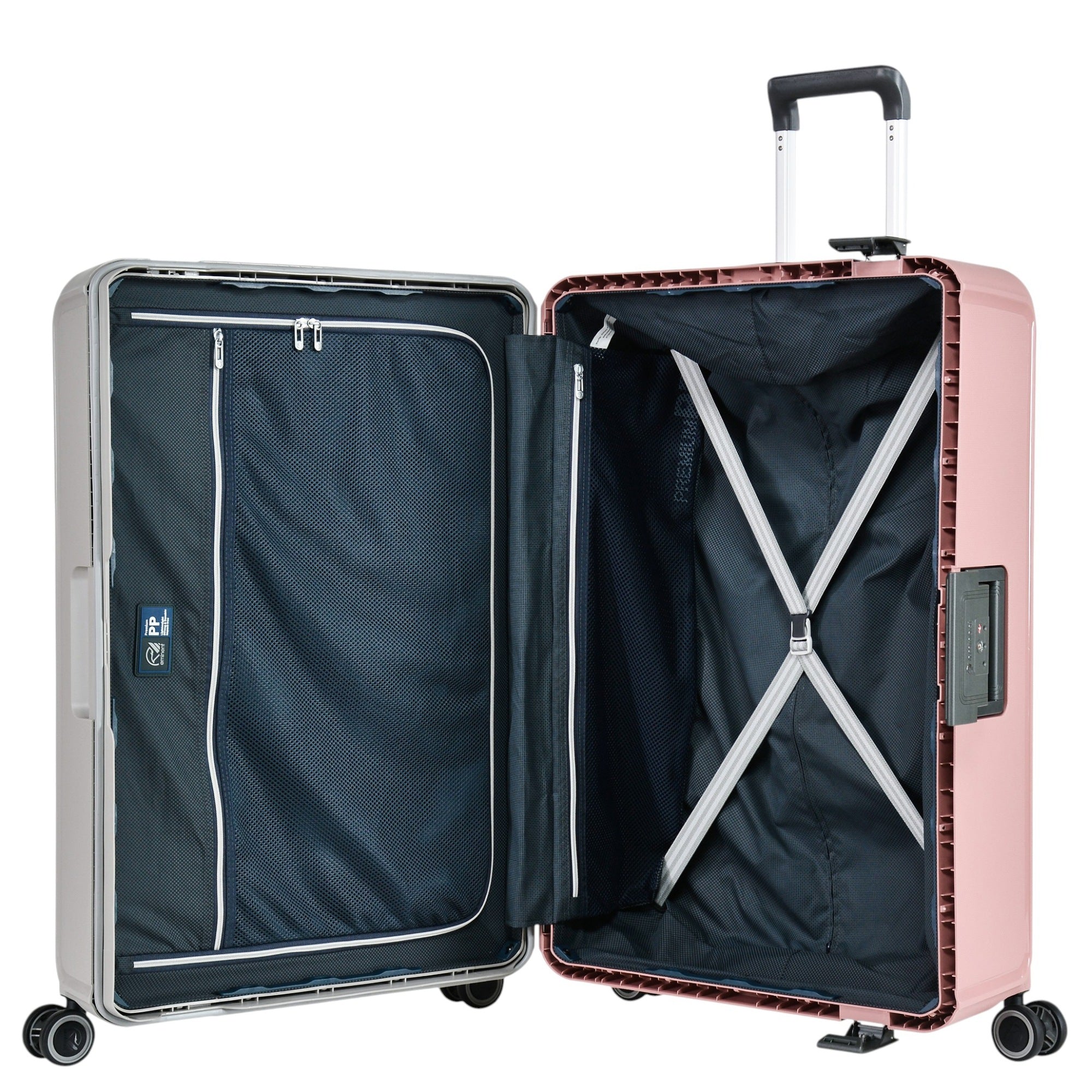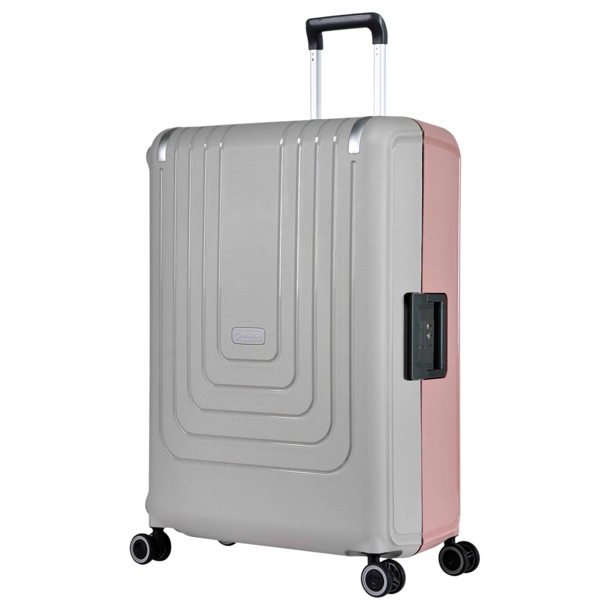 Der Eminent VERTICA ist ein 4-Rollen-Trolley in grau/rosa, der mit seiner robusten Hartschale aus 100 % Polypropylen besonders widerstandsfähig und langlebig ist. Mit einem Volumen von 118 l und einem Gewicht von 5,40 kg bietet er ausreichend Platz für verschiedenste Reisebedürfnisse.
