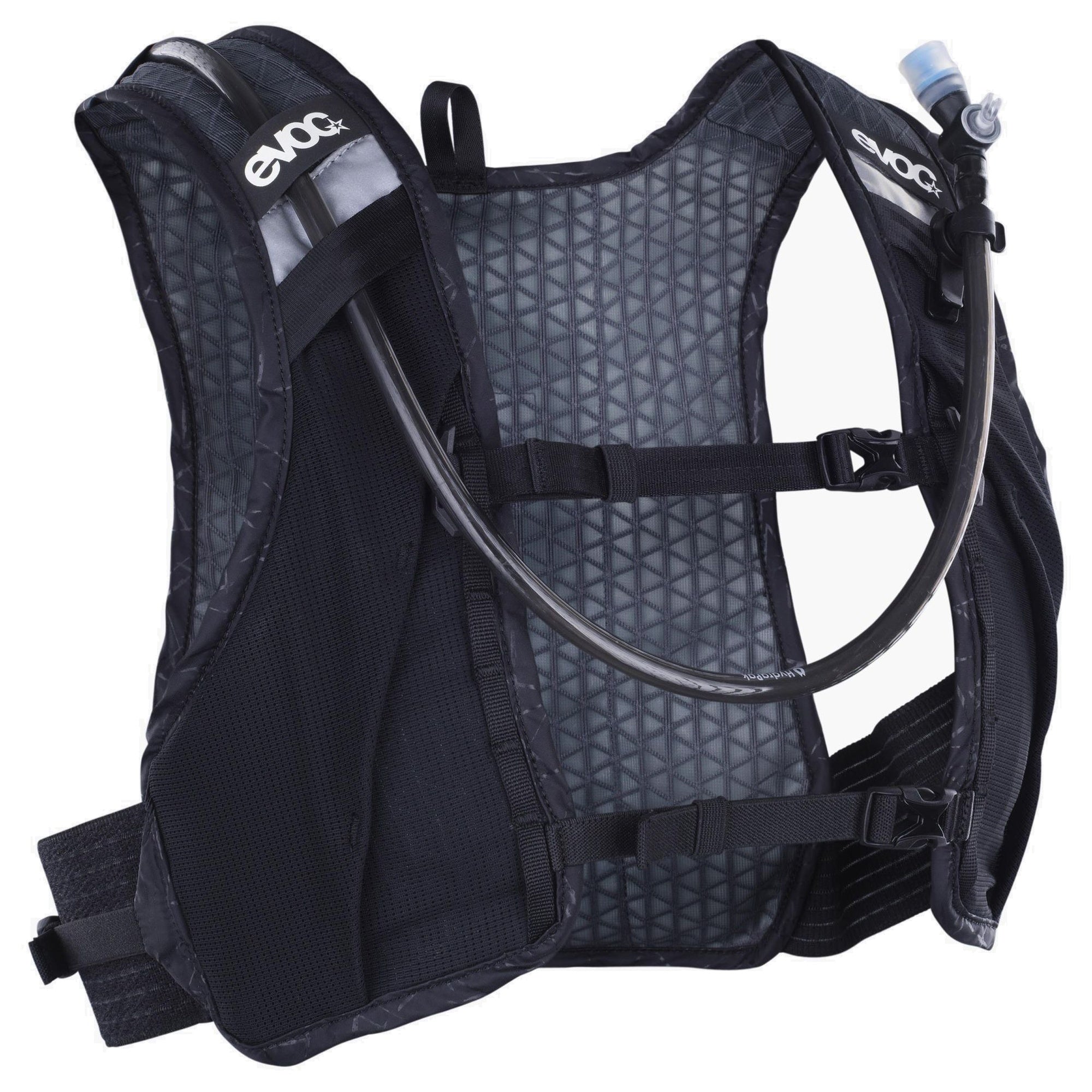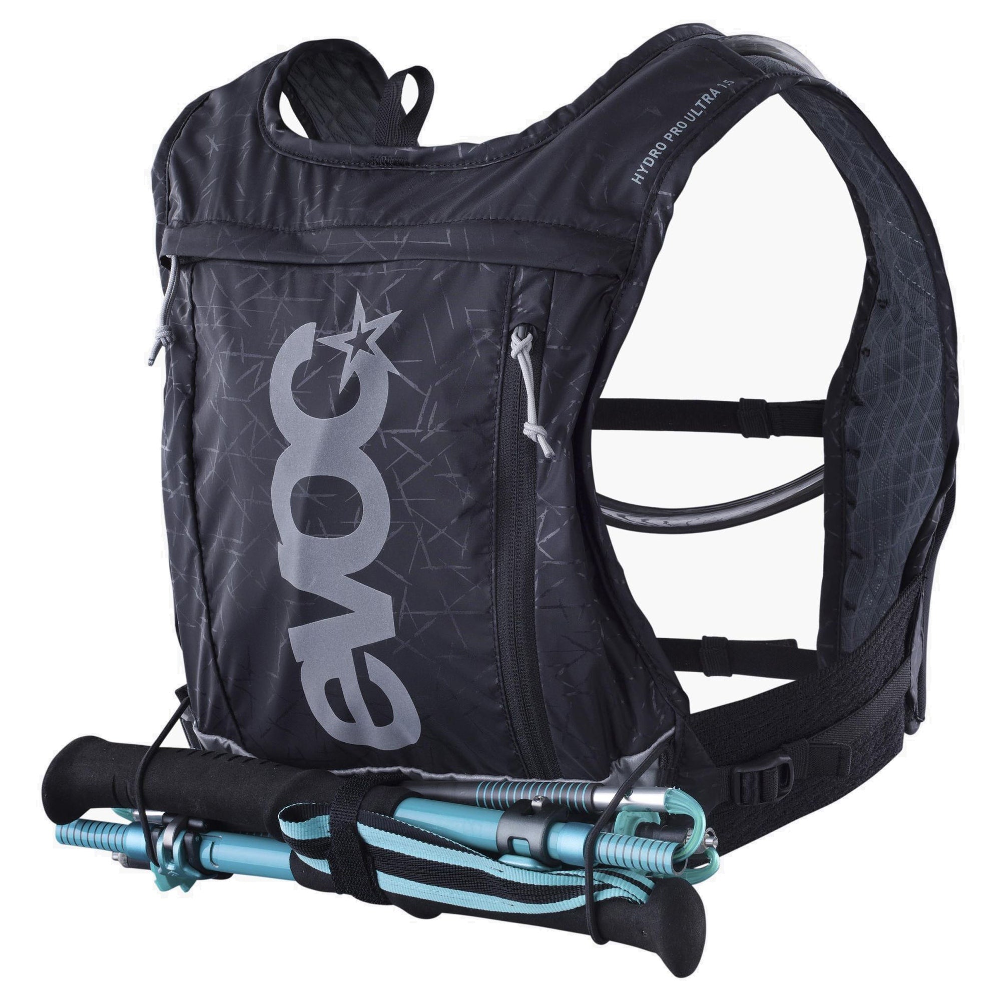 Der schwarze Evoc Hydro Pro Ultra ist ein robuster und durchdachter Begleiter für Bikepacking, Trailrunning und alle, die beim Sport auf Funktionalität und Komfort setzen.