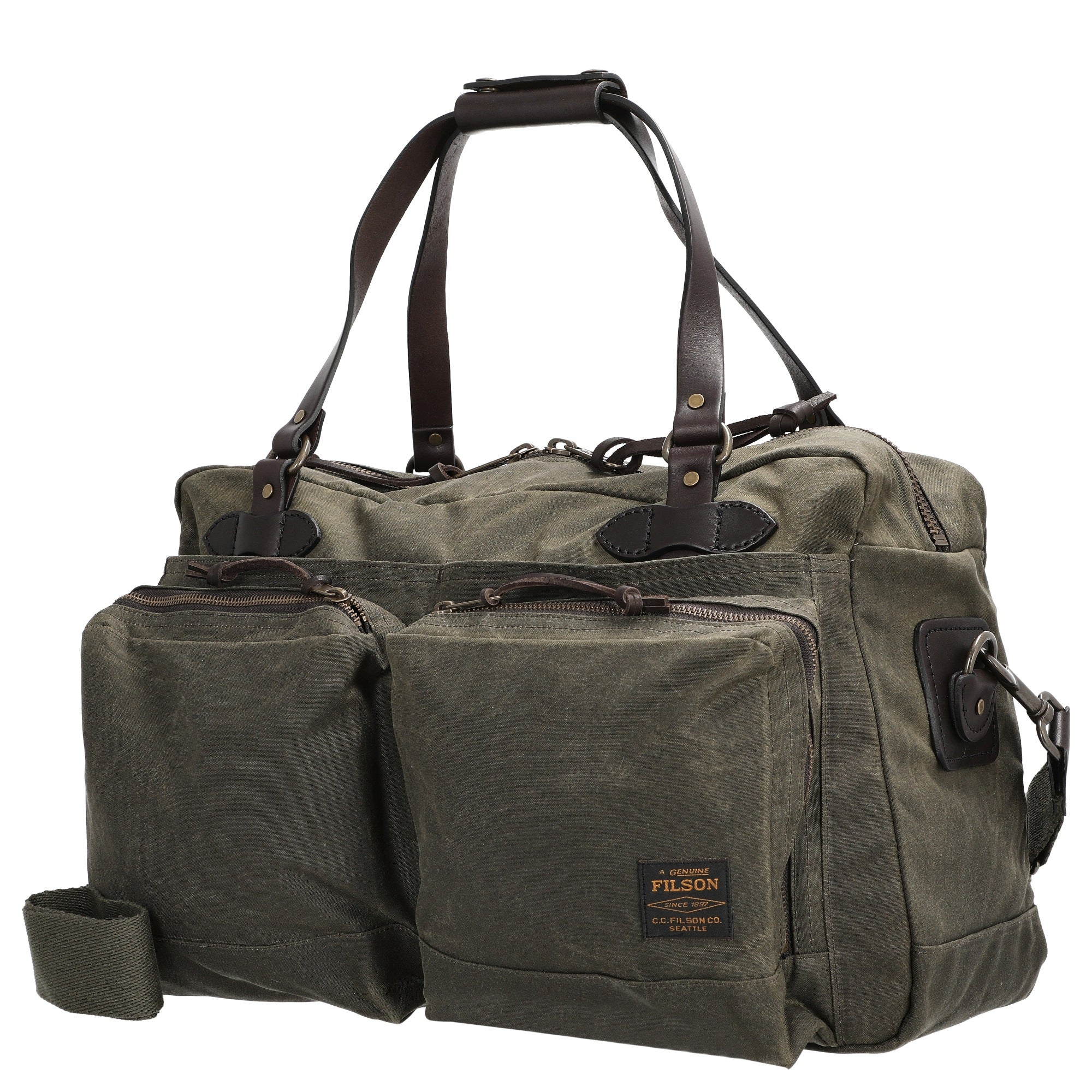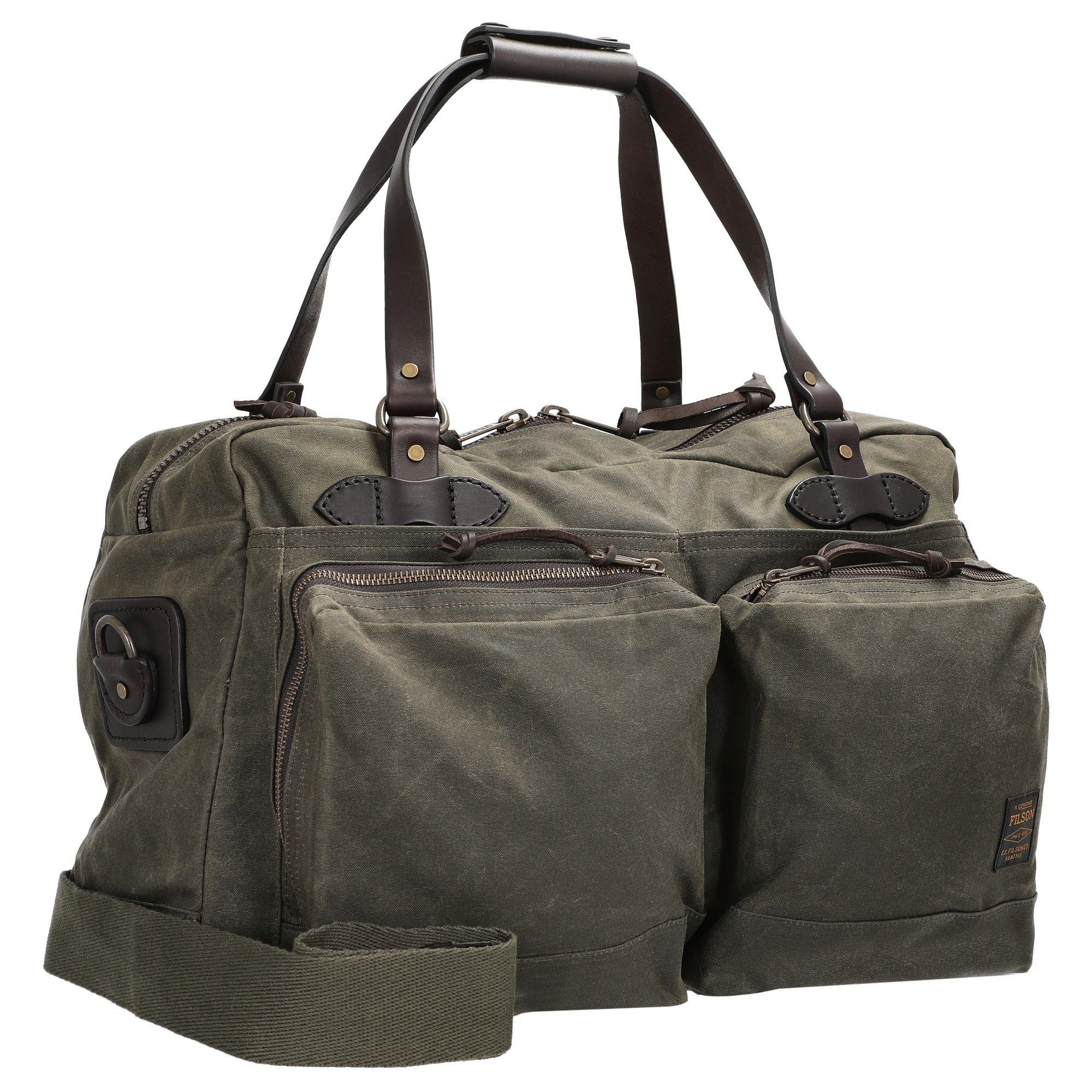Die Filson 48 Hour Tin Cloth Duffle Bag in otter green ist eine robuste Reisetasche, die sich ideal für Kurztrips und Wochenendreisen eignet. Ihr widerstandsfähiges Tin Cloth mit Oil Finish schützt zuverlässig vor Nässe und sorgt für Langlebigkeit im Alltag.