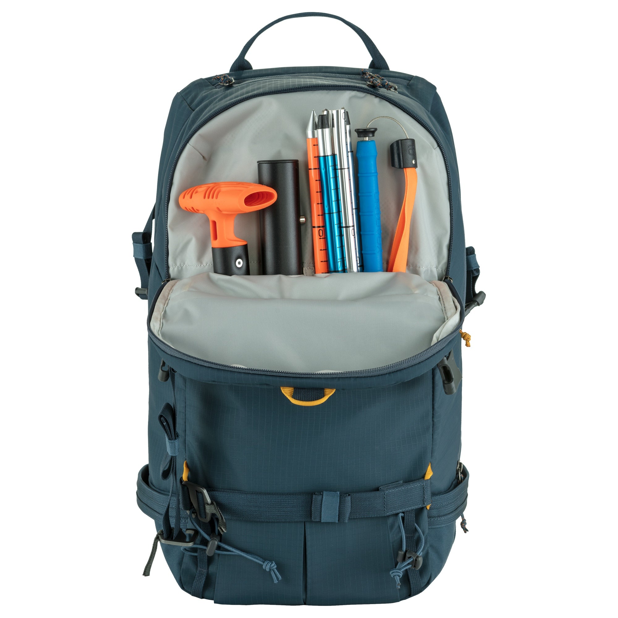 - Hauptfach mit drei Reißverschluss-Schiebern – für schnellen Zugriff und bessere Organisation der Ausrüstung.