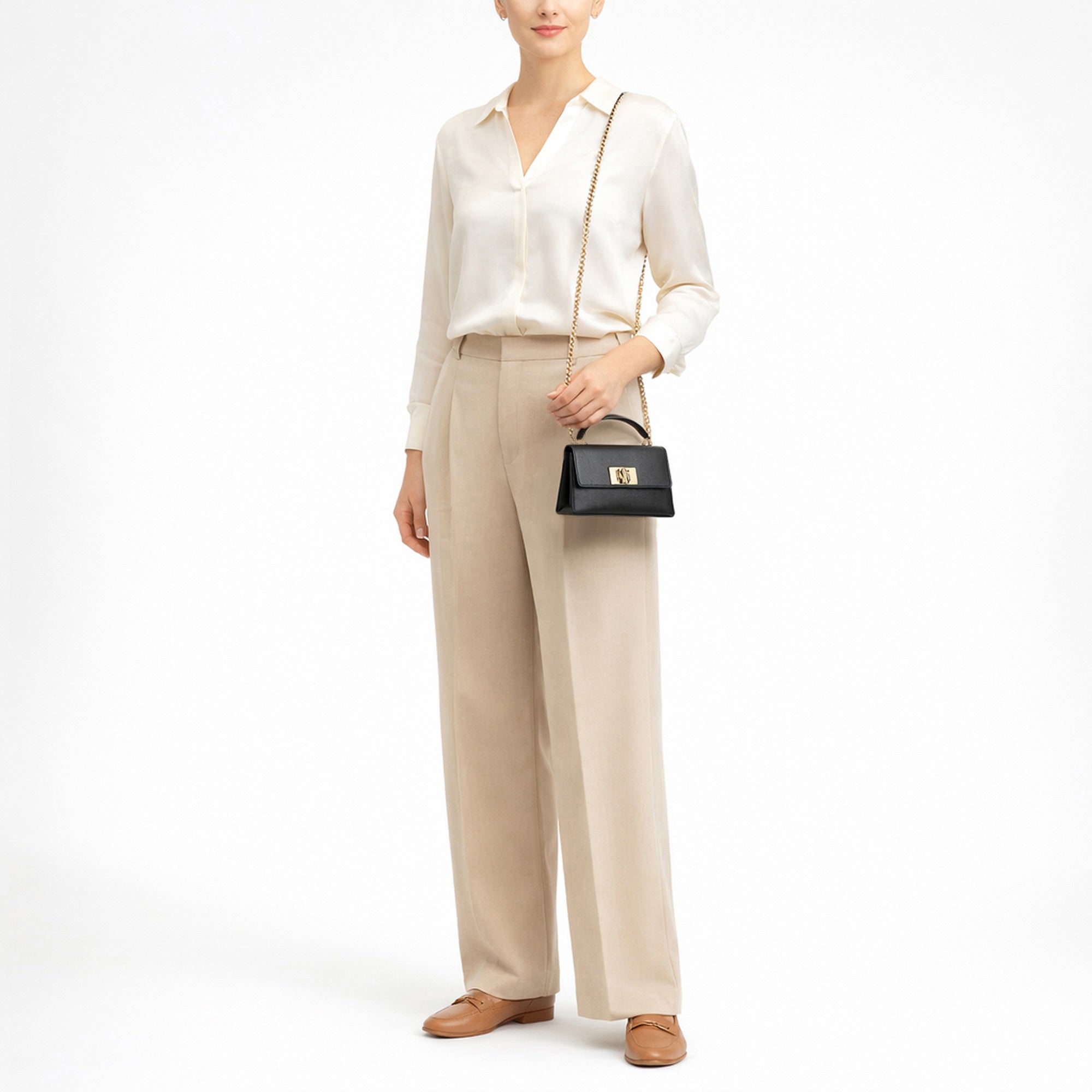 - Vielseitiges Tragesystem mit oberem Henkel und schmalem, abnehmbarem Kettenriemen für individuelle Looks