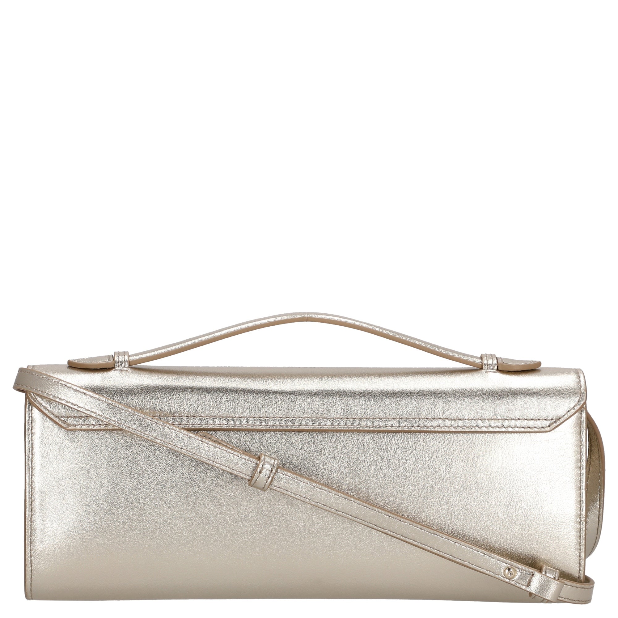 Die Furla Clara Clutch präsentiert sich als stilvolle Umhängetasche in einem edlen Goldton, der jedem Outfit einen Hauch von Glamour verleiht. Ihr weiches Nappaleder mit glänzendem Metallic-Finish macht sie zu einem modischen Highlight für besondere Anlässe oder elegante Abendveranstaltungen.