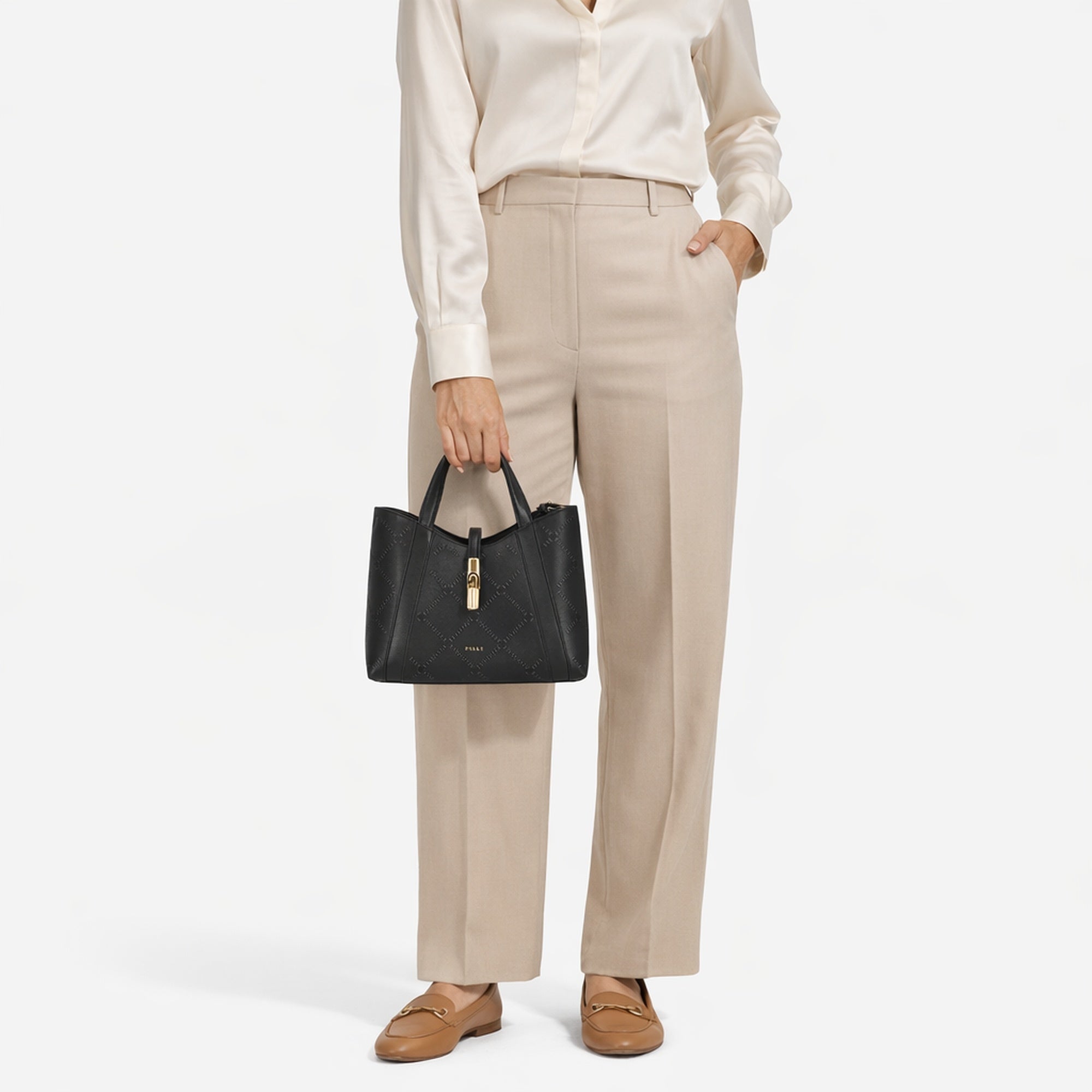 Ob im urbanen Alltag oder zu besonderen Anlässen, die Furla Goccia Tote in elegantem nero ergänzt stilvoll jede Garderobe und überzeugt durch ihre Kombination aus Funktionalität und modischem Flair.