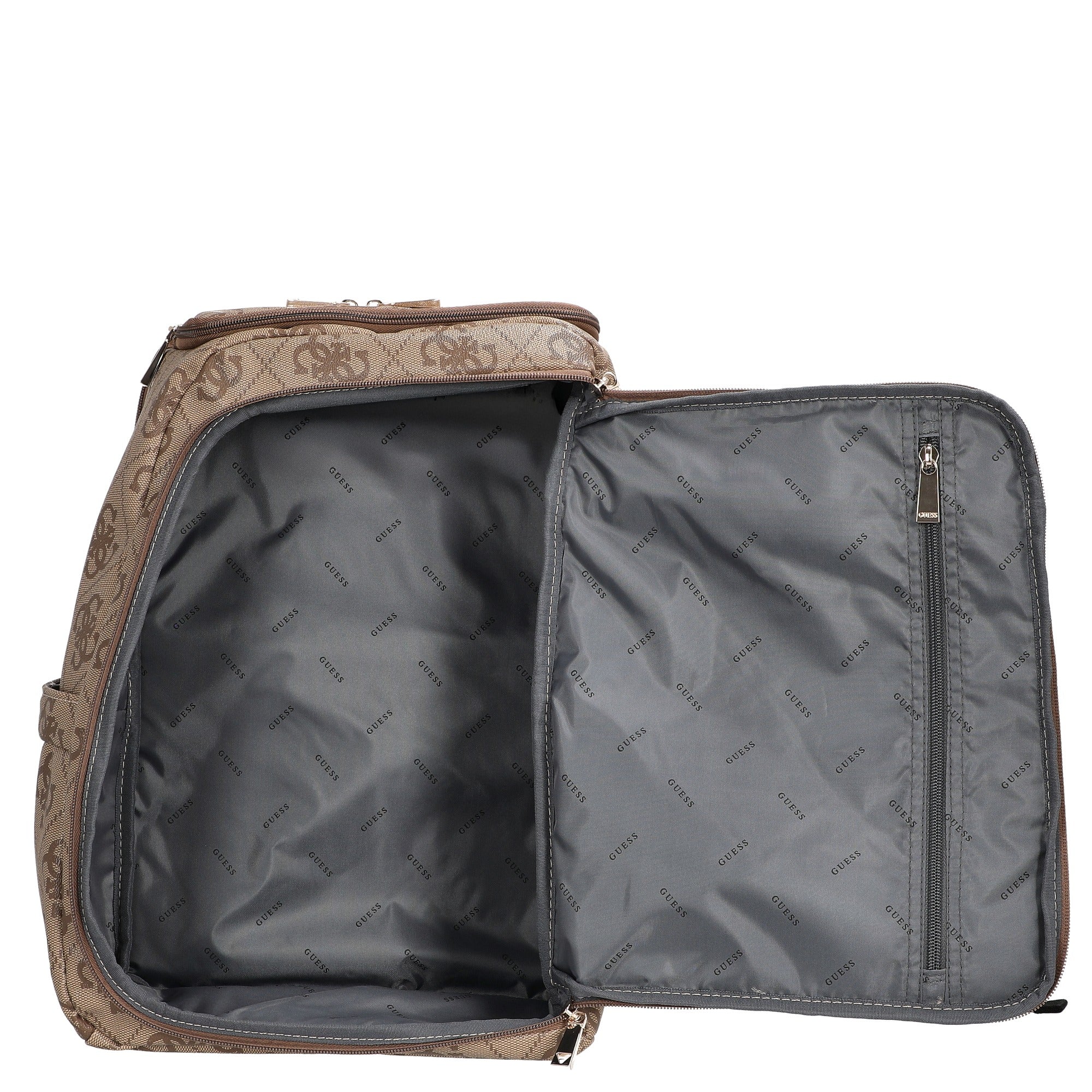 - Markantes Design – Metallisches Guess-Logo und goldfarbene Reißverschlüsse als stilvolle Akzente