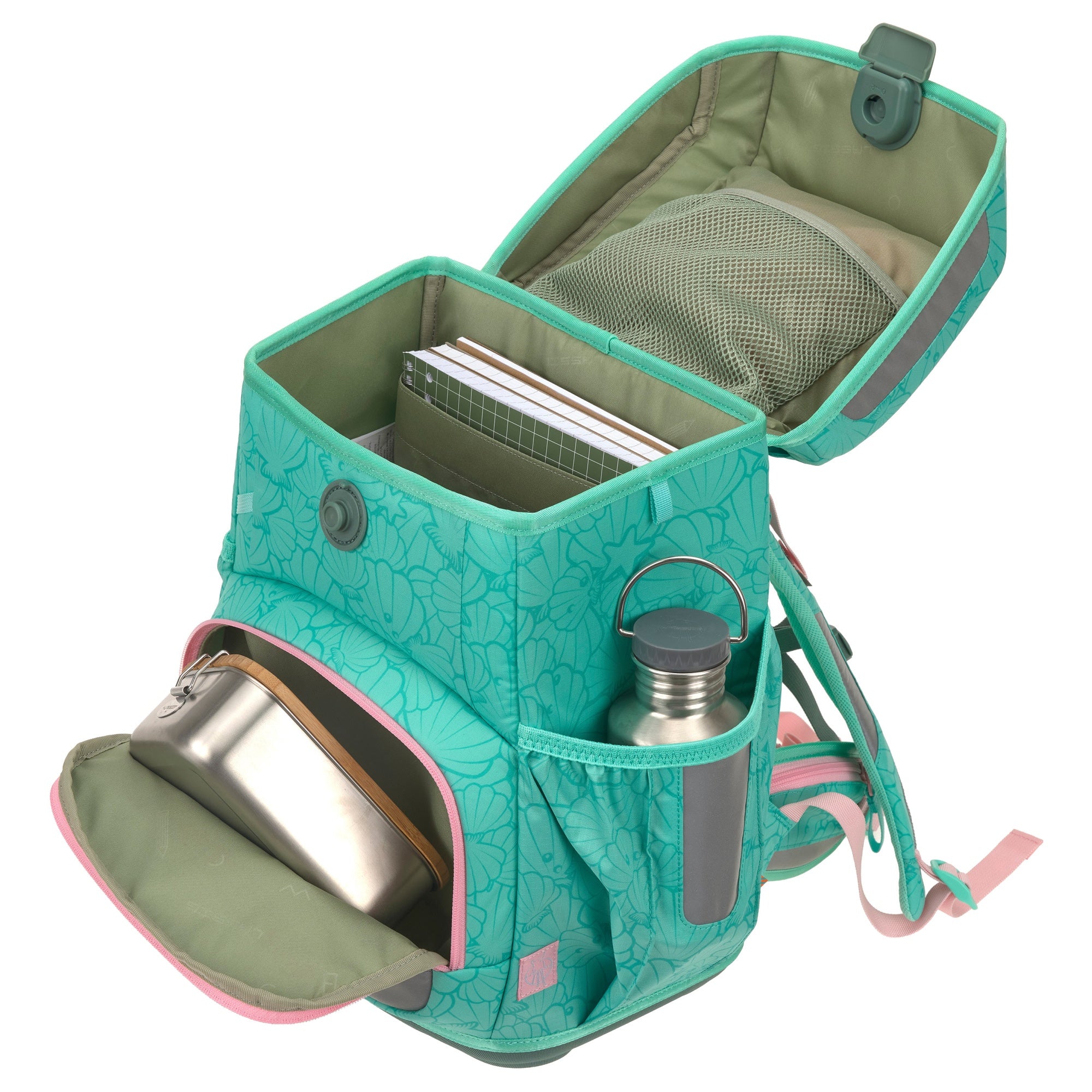Der Schulranzen in seashell turquoise überzeugt durch sein funktionales Design und unterstützt Kinder mit durchdachten Details und ergonomischem Tragesystem im Schulalltag.