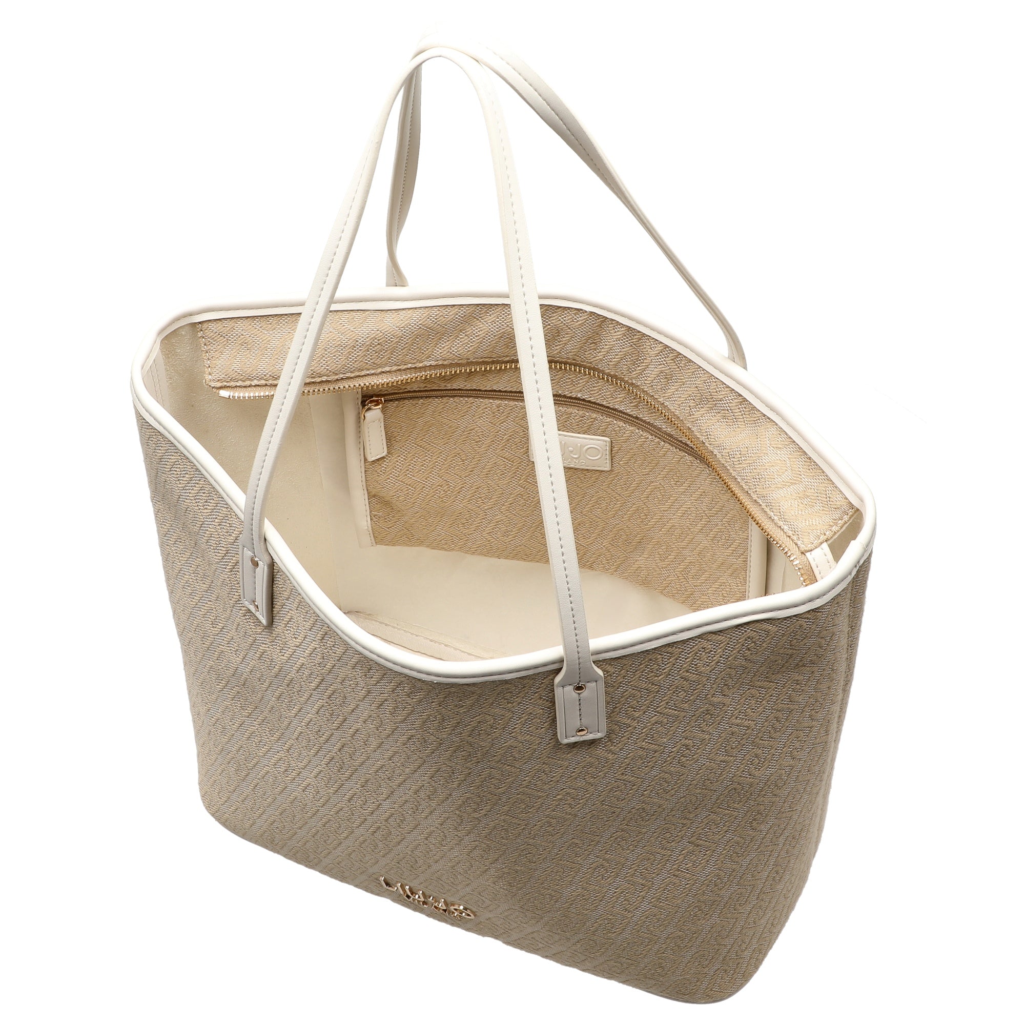 Diese elegante Henkeltasche von Liu Jo besticht durch ihr fein strukturiertes Jacquardgewebe in natürlichem Beige, das mit einem stilvollen Monogramm-Muster modische Akzente setzt. Die naturale Farbe verleiht der Tasche eine zeitlose, vielseitige Ausstrahlung, die sich mühelos zu verschiedenen Outfits kombinieren lässt.