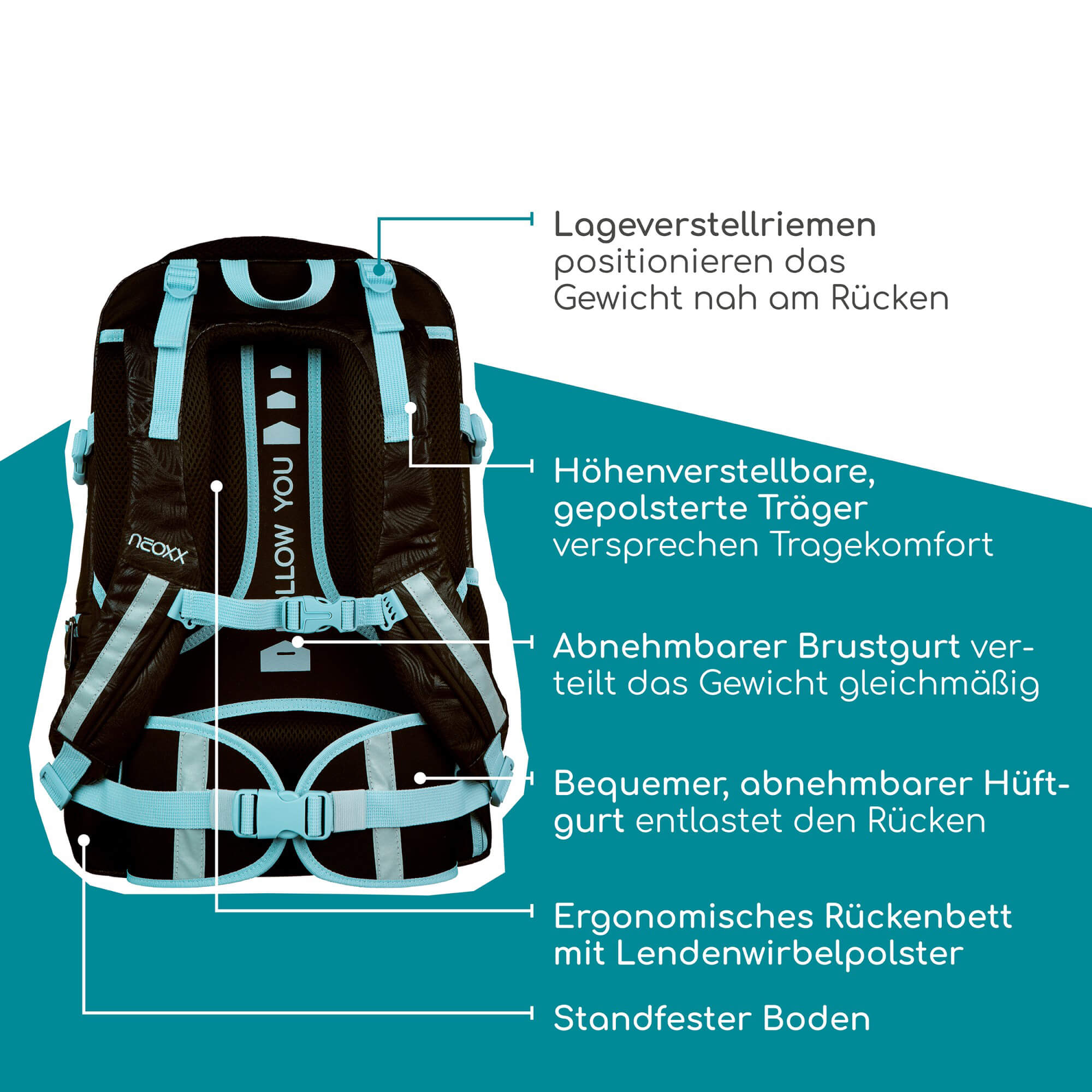 - Ergonomisches Rückensystem für optimalen Tragekomfort und gesunde Haltung