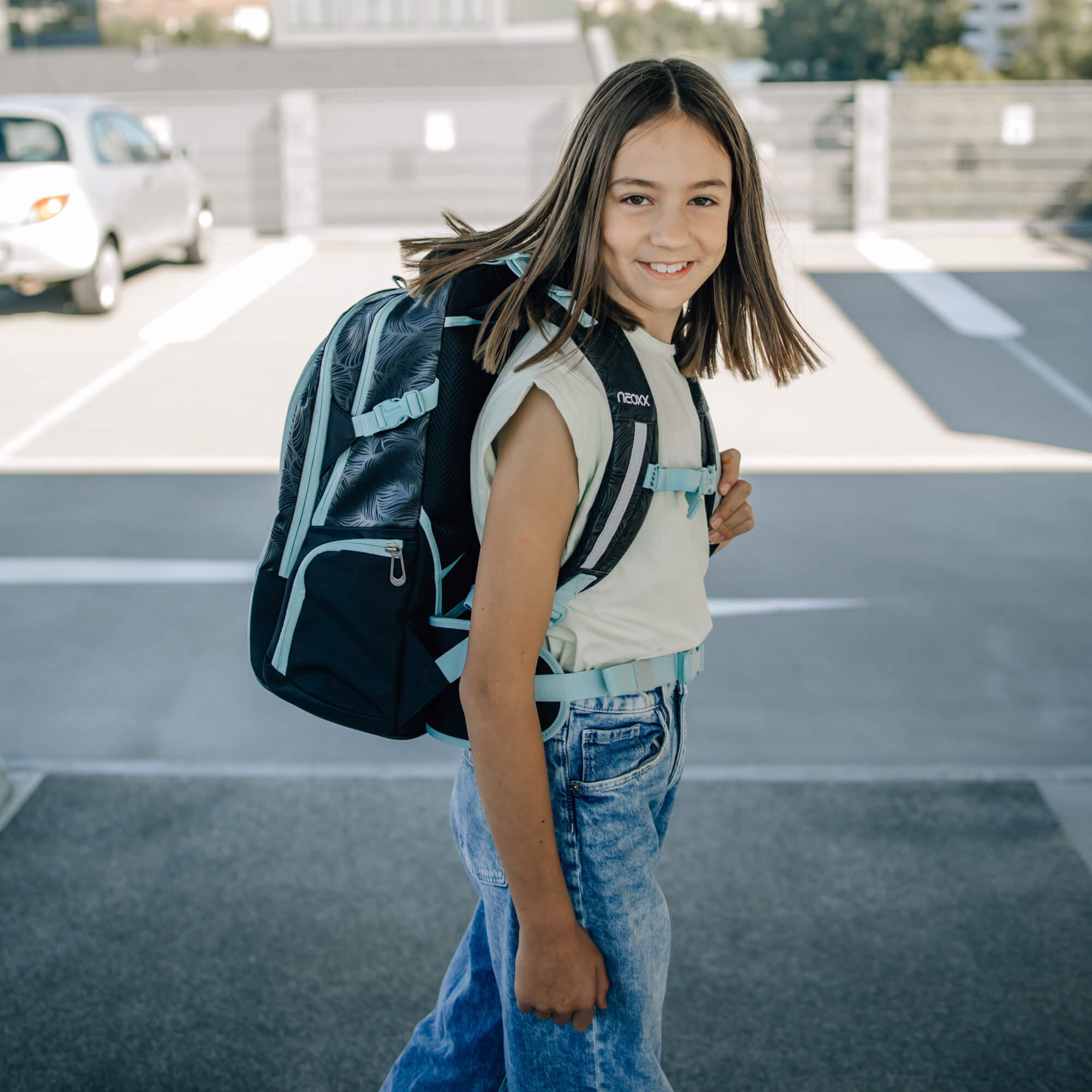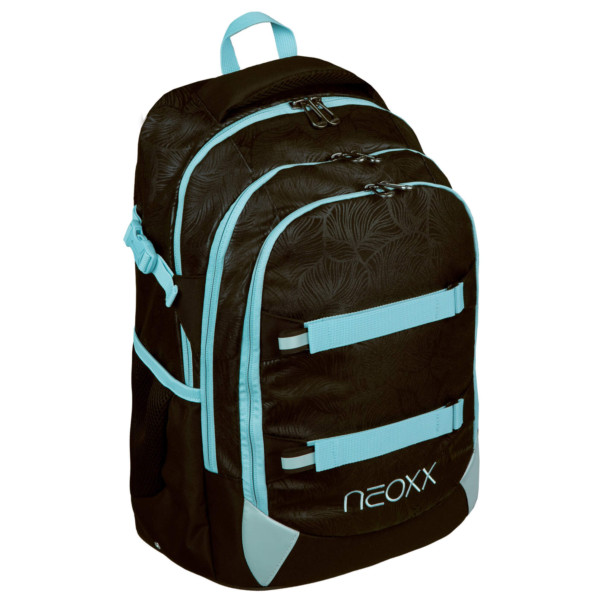 Der Active Pro Schulrucksack von Neoxx ist ein durchdachter Begleiter für Schüler ab der 5. Klasse, der durch sein ergonomisches Rückensystem hohen Tragekomfort bietet. Die Kombination aus schwarzer Grundfarbe mit hellblauen Akzenten sorgt für einen modernen Look, der bei Kindern und Eltern gleichermaßen ankommt.