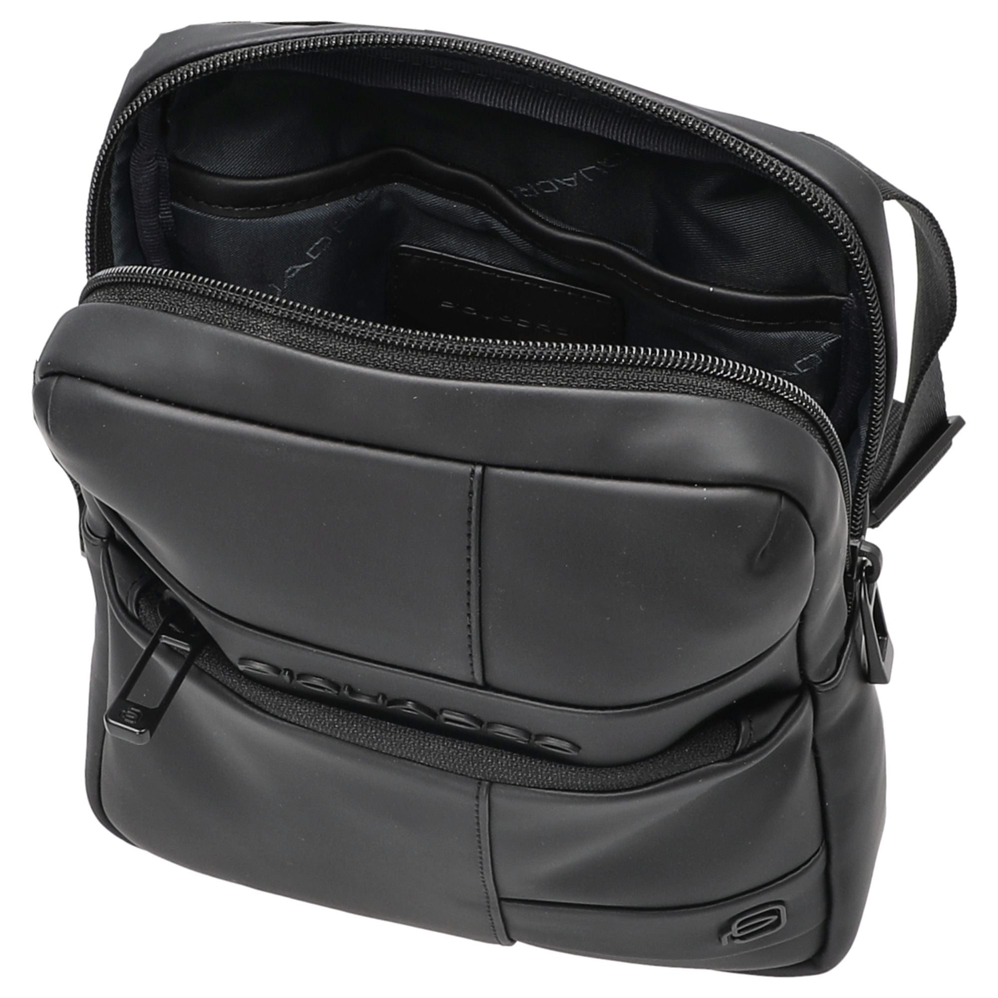 Die Piquadro Wollem Umhängetasche in elegantem Schwarz ist ein stilvoller Begleiter für modebewusste Frauen, die Wert auf Funktionalität und Design legen.