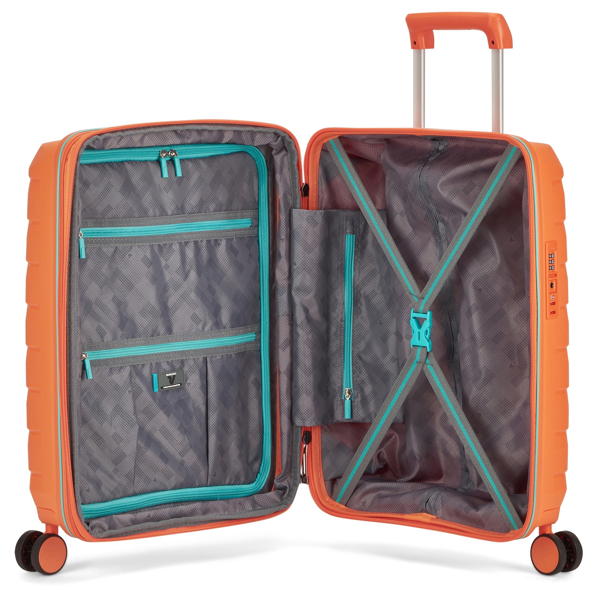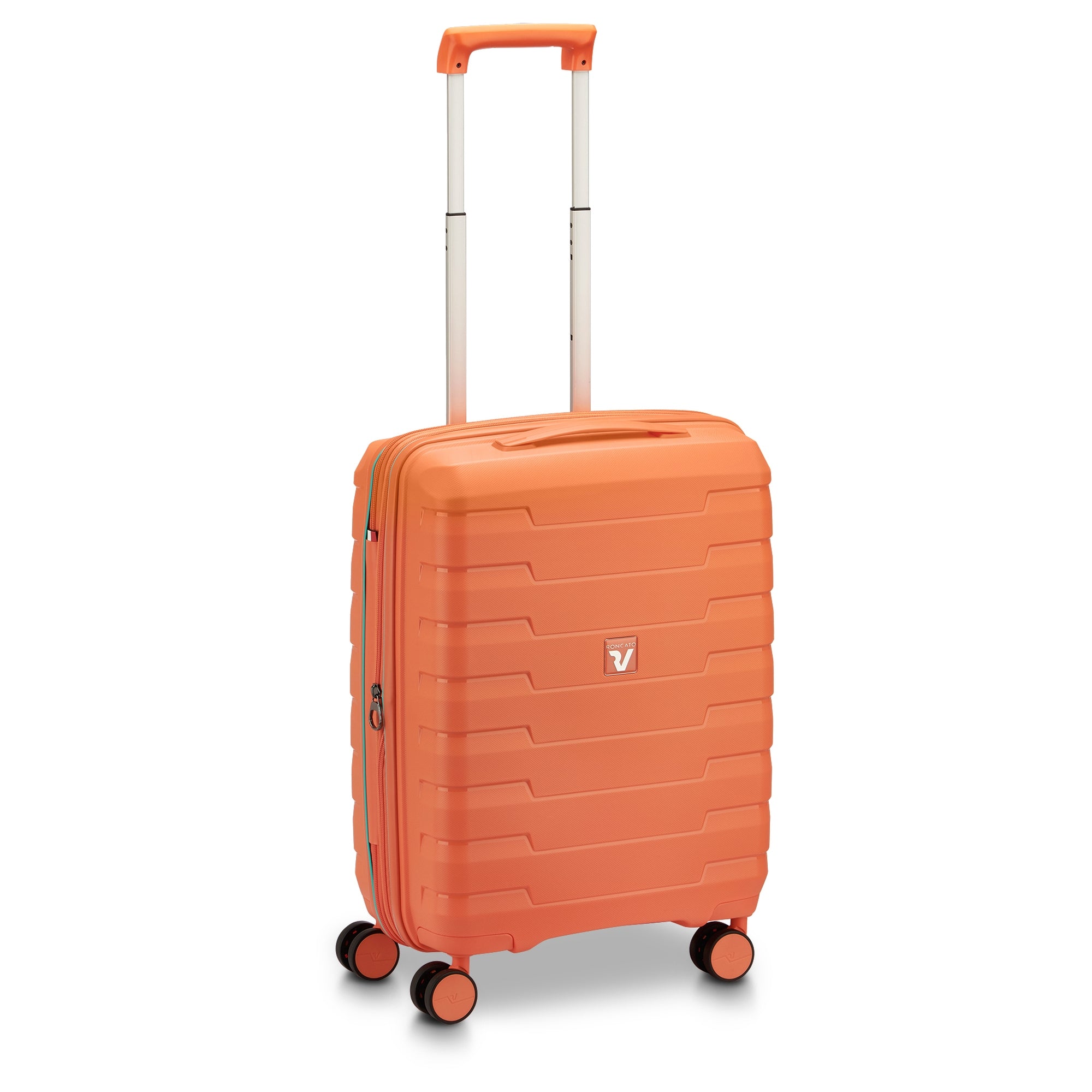 Entdecken Sie den Roncato Skyline 2.0 4-Rollen-Kabinentrolley in der auffälligen Farbe Mango, der sich ideal für Ihre Reisen eignet. Mit einem **erweiterbaren Volumen von 40L auf 50L** bietet dieser Trolley ausreichend Platz für all Ihre Reiseutensilien, egal ob für einen Kurztrip oder eine längere Reise.