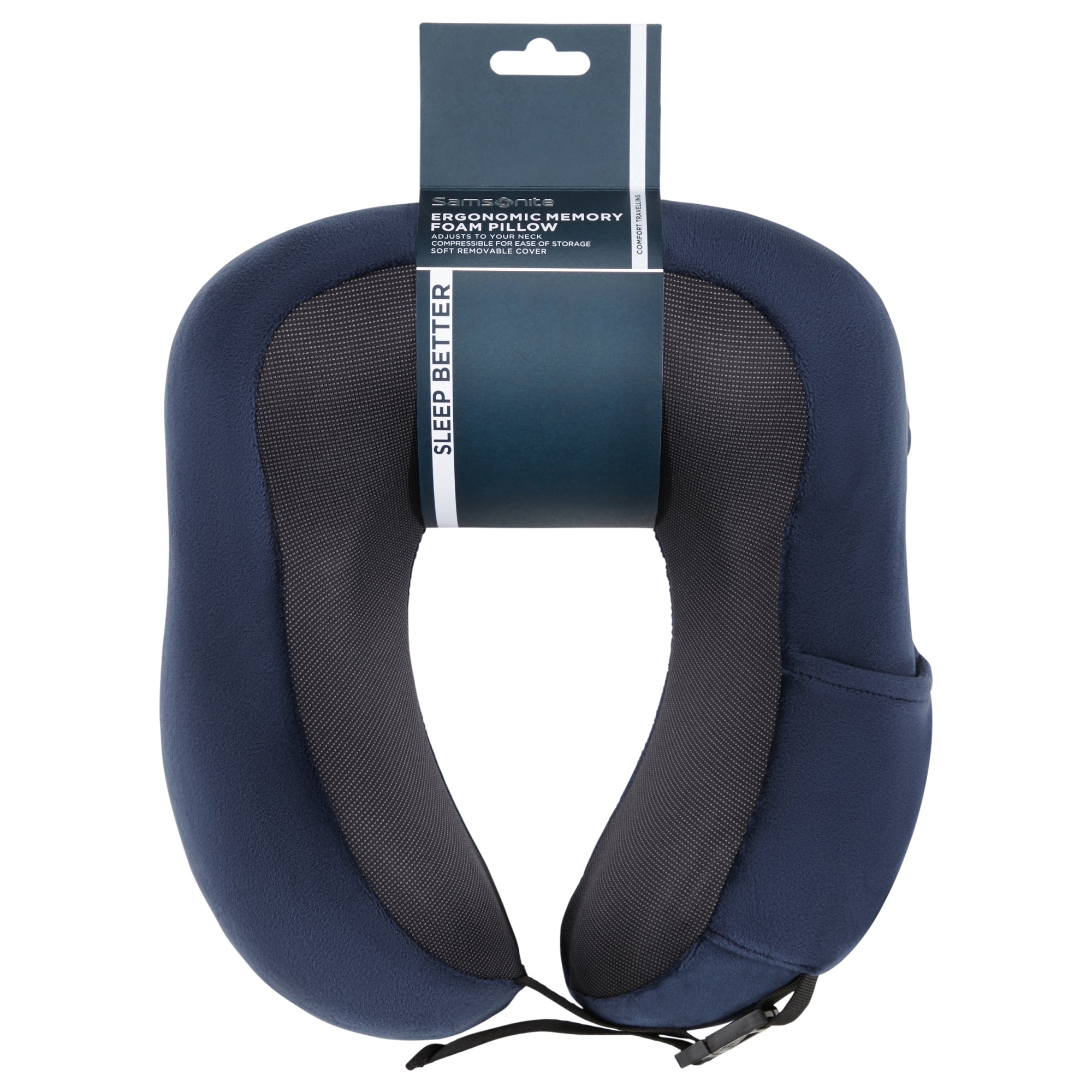 Ein ergonomisch geformtes Nackenkissen von Samsonite in elegantem midnight blue, das optimalen Komfort auf Reisen bietet.
