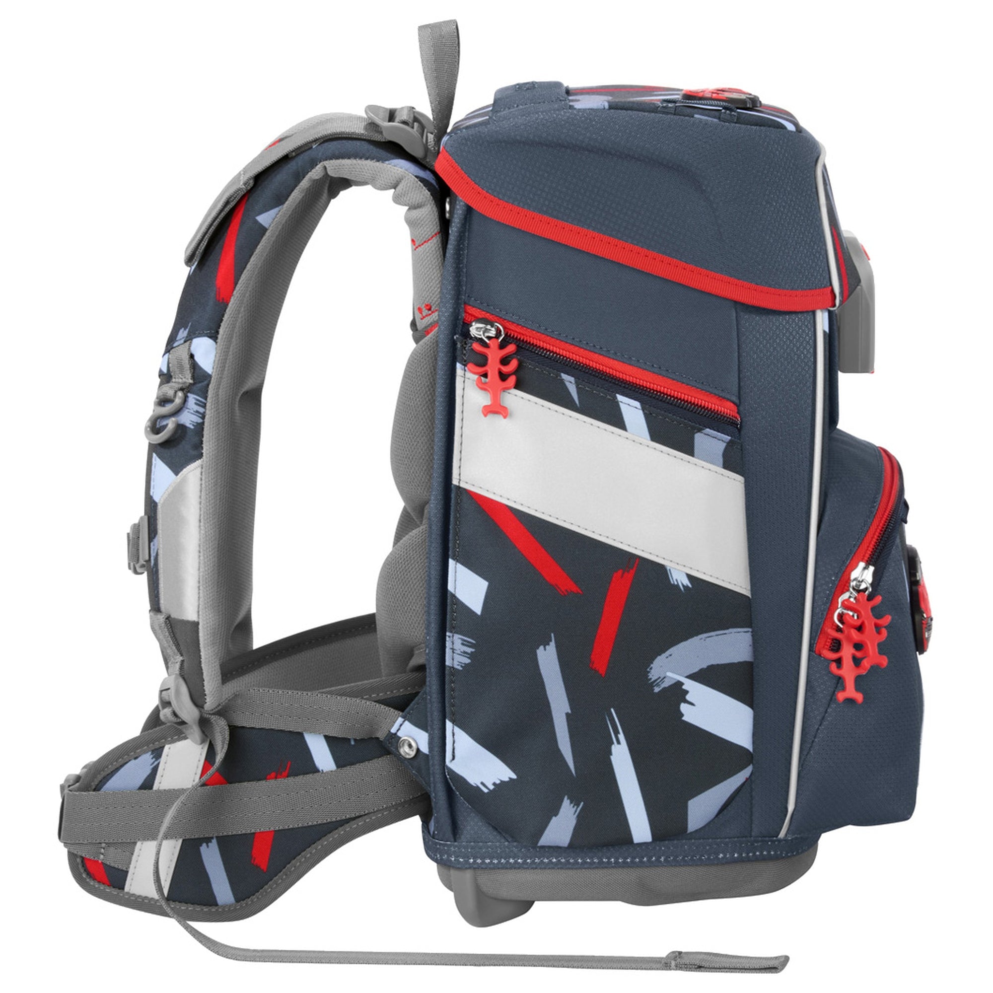 Praktische Details – Fidlock-Magnetverschluss, Namensfeld, Schlüsselanhängerfach und Aufhängeschlaufen runden das durchdachte Design ab