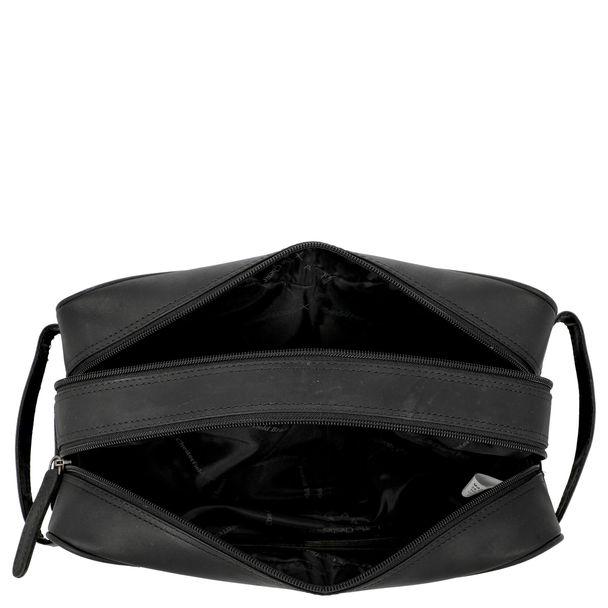 Der Kulturbeutel Stefan von The Chesterfield Brand besticht durch sein robustes Leder und das zeitlose schwarze Design, das sich ideal für Reisen und den Alltag eignet.