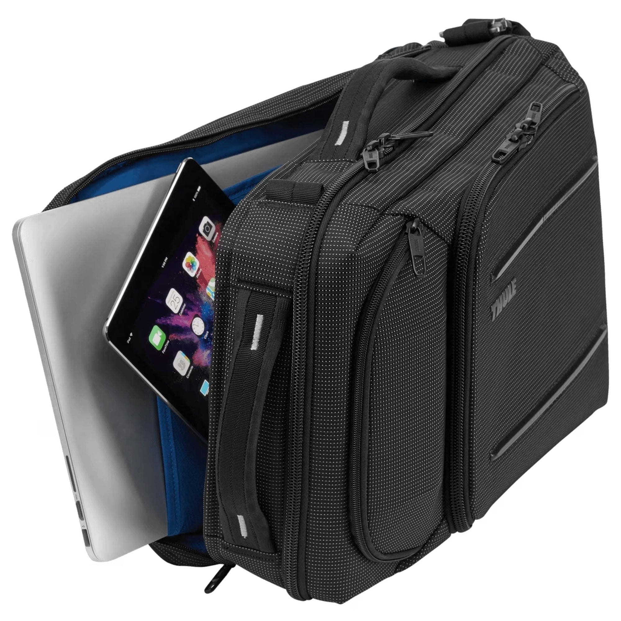 - Gepolsterte Fächer – optimaler Schutz für einen 15.6-Zoll-Laptop und ein 10,1-Zoll-Tablet
