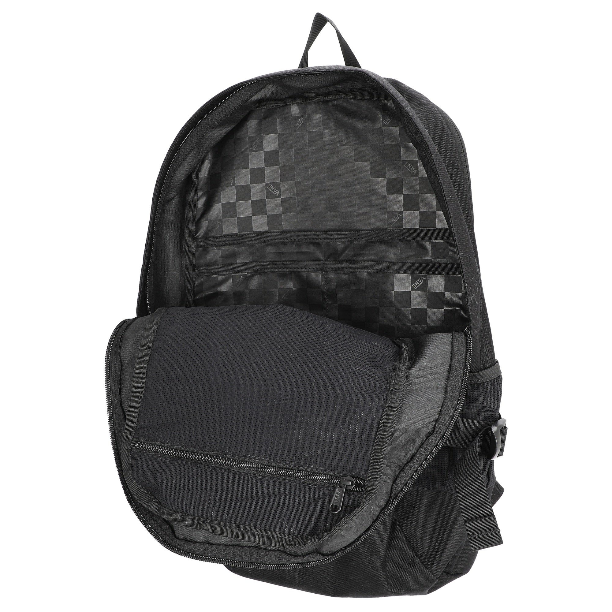 Ein robuster und vielseitiger Vans Rucksack in klassischem Schwarz, der sich ideal für Alltag, Freizeit und Uni eignet.